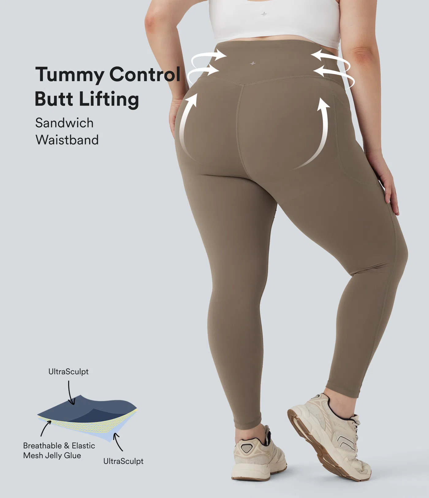 $49.95 USDHalara UltraSculpt™ - Geraffte Yoga-Leggings mit hohem Bund, Seitentaschen und Bauchkontrolle - Po-Lifting, Plus-Size