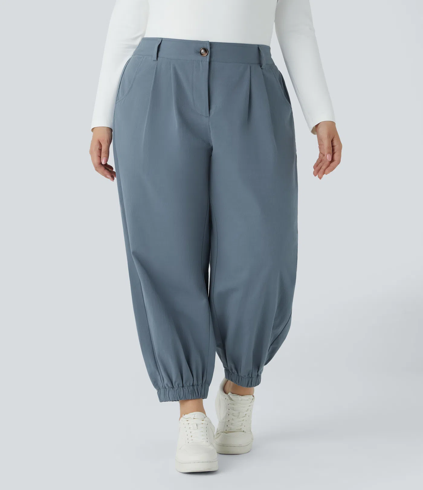 Sale$57.95 USDPlus Size Deal: -10 € ab 99 €, -30 € ab 199 €Patitoff™ Flow Pet Hair Resistant High Waisted Drawstring Side Pocket Plus Size Plain Full Length Joggers