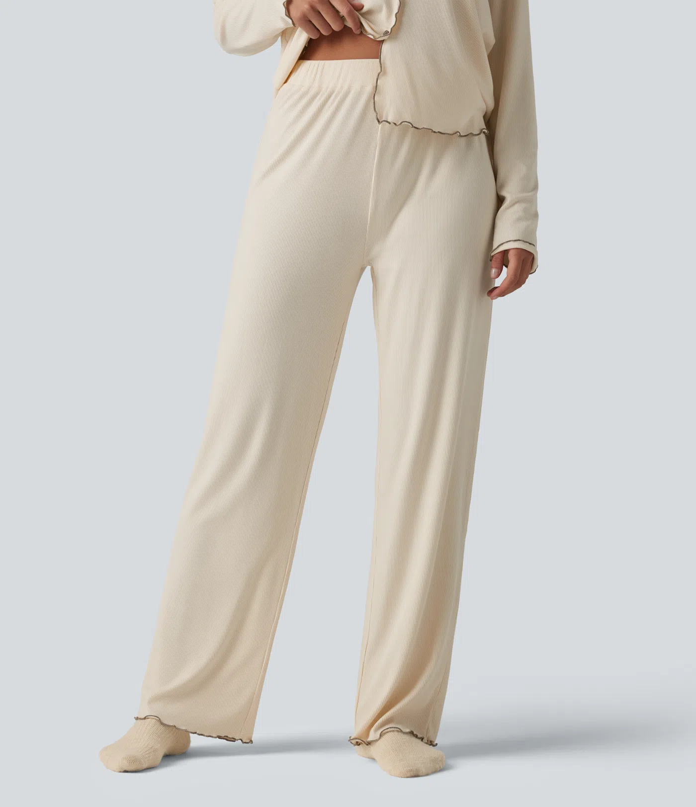 Loungehose mit hohem Bund und Rüschensaum