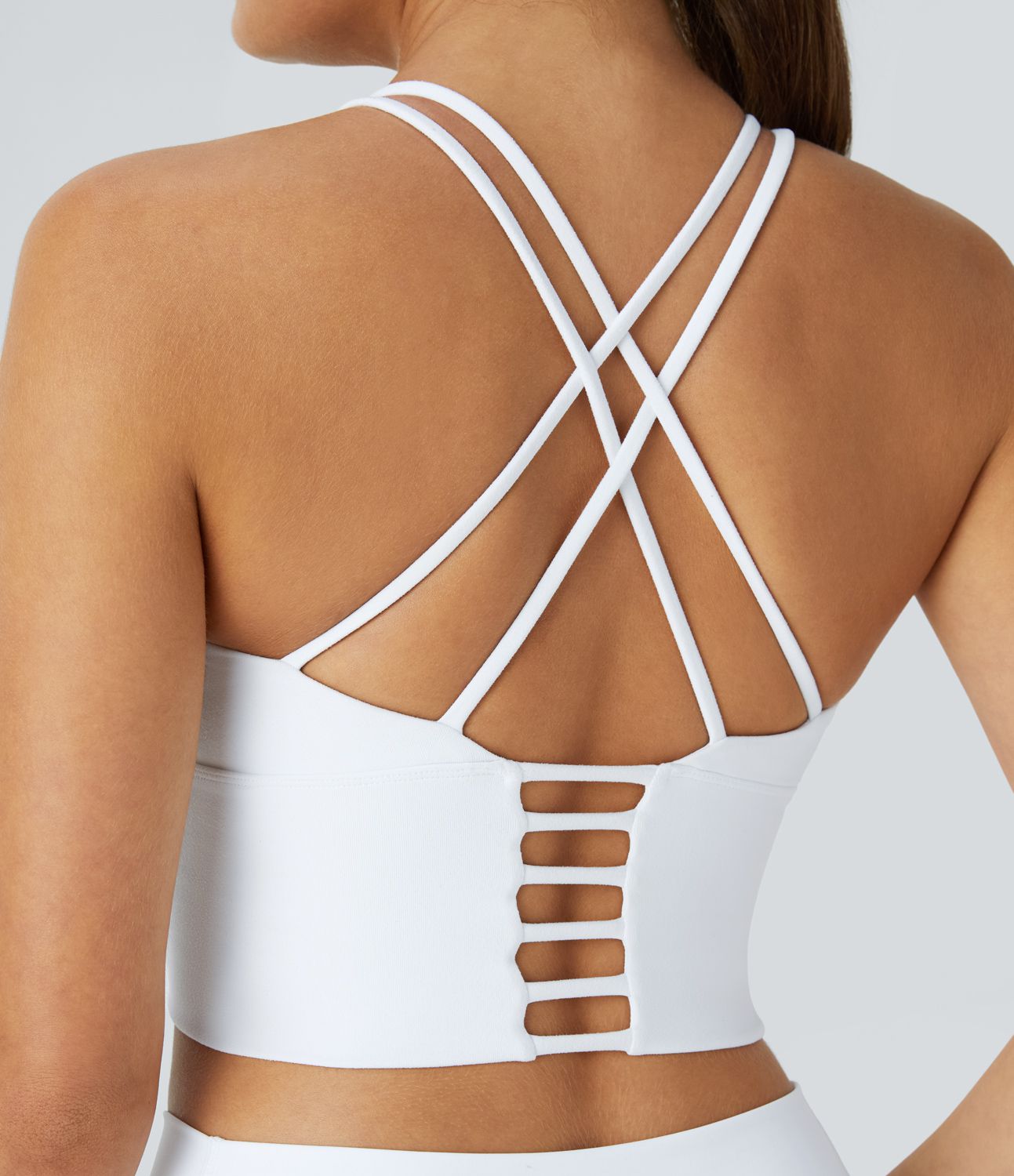 Rückenfreier, Yoga-Sport-BH mit leichtem Support, überkreuzten Trägern und U-Ausschnitt
