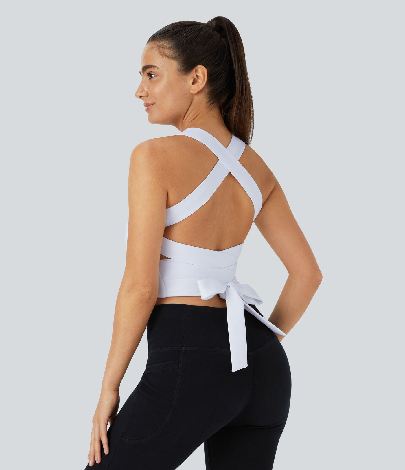 Softlyzero™ Airy Rückenfreies, gepolstertes, überkreuztes Trainings-Tanktop zum Schnüren