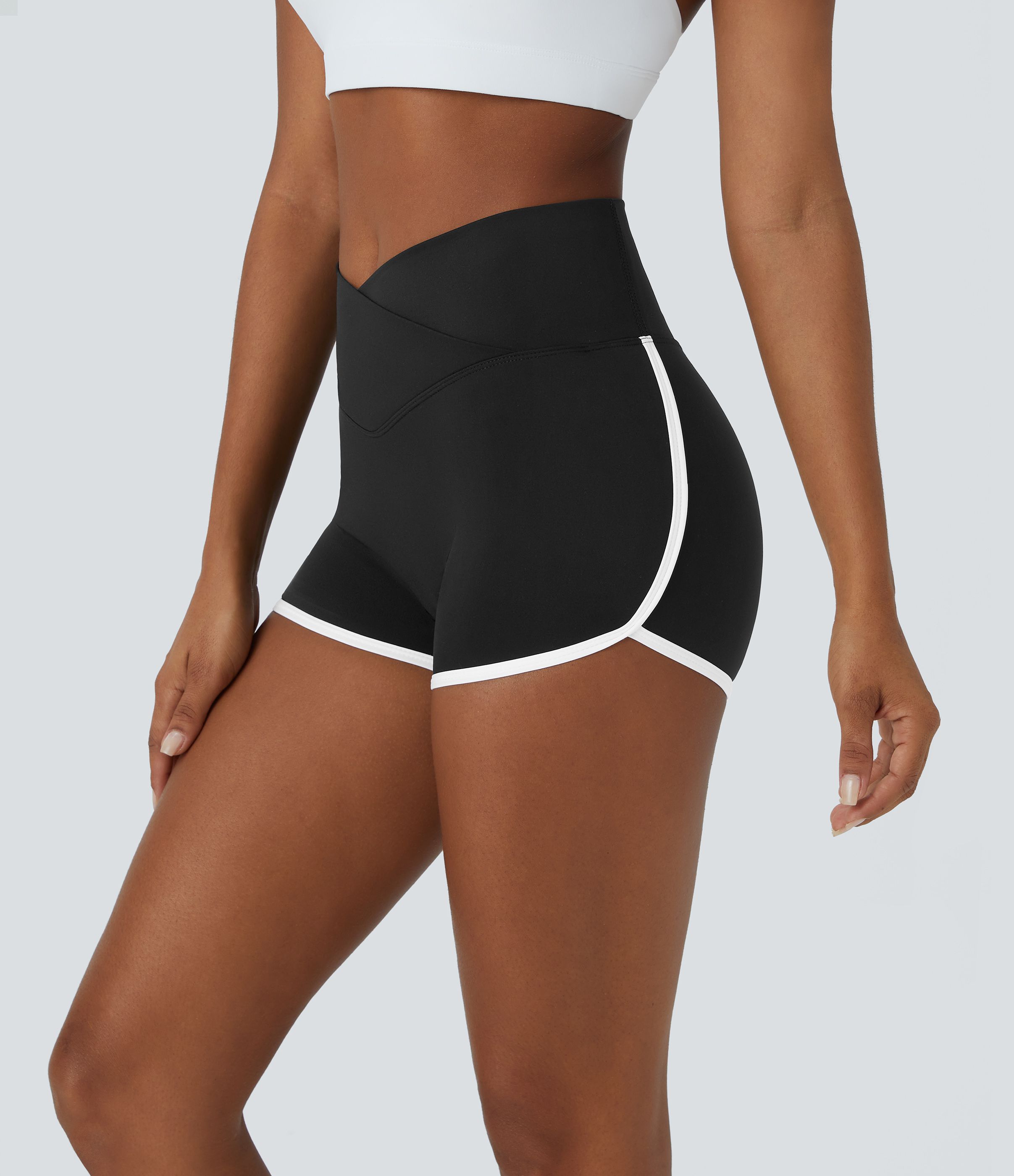 Softlyzero™ Airy Hoch taillierte Cool-Touch Po-Lifting Crossover-Shorts mit Scrunch und Farbblock 6,35 cm