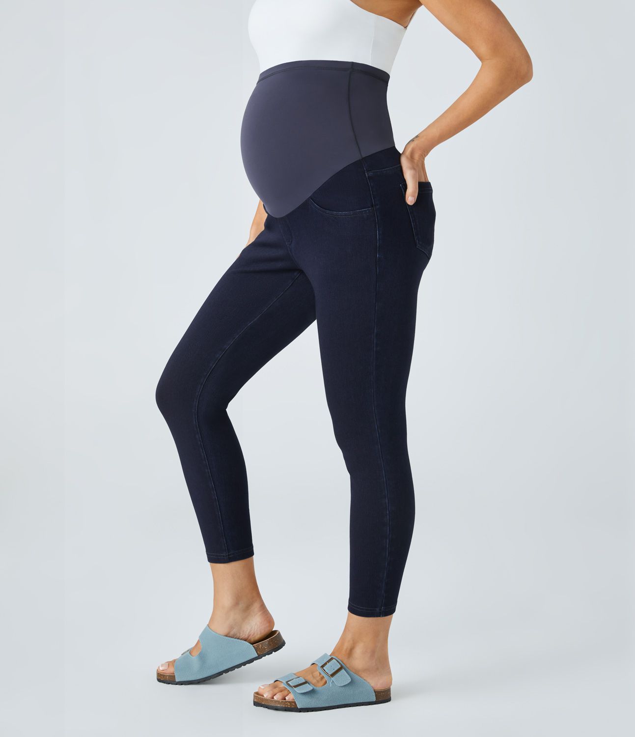 Halara Flex™ 7/8-Leggings aus elastischem Strickdenim mit superhohem Bund und mehreren Taschen - Umstandsmode