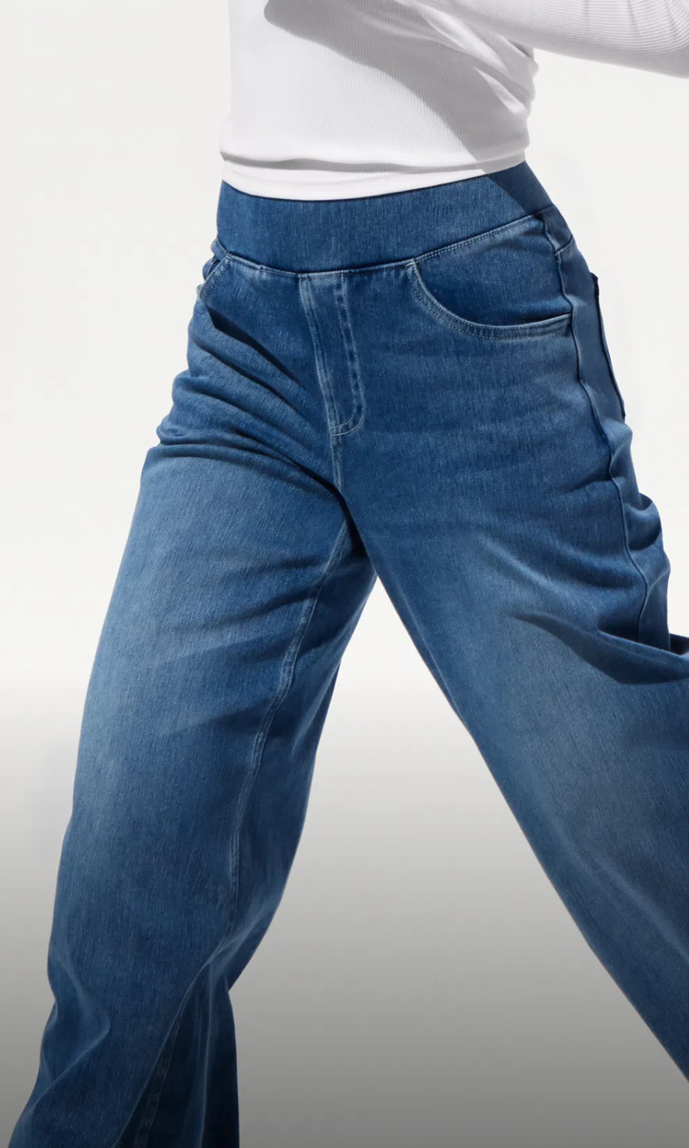 Damen Halara Flex™ Baggy Jeans aus verwaschenem Stretch-Strick mit hohem Bund, mehreren Taschen und weitem Bein, Wide Leg Jeans - Halara