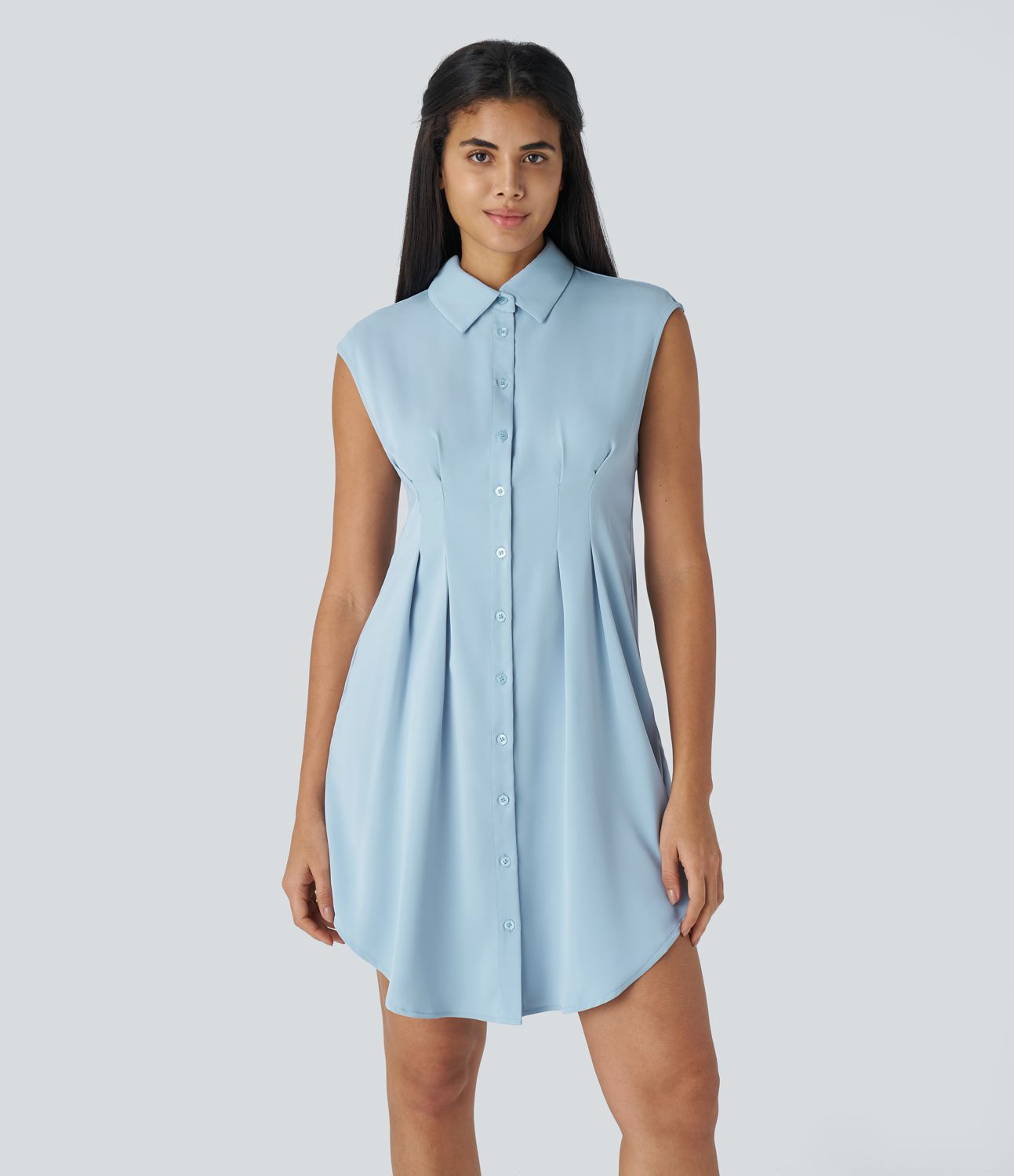 Ärmelloses Hemdblusenkleid mit Kragen und Knopfleiste, gefaltetem, abgerundetem Saum