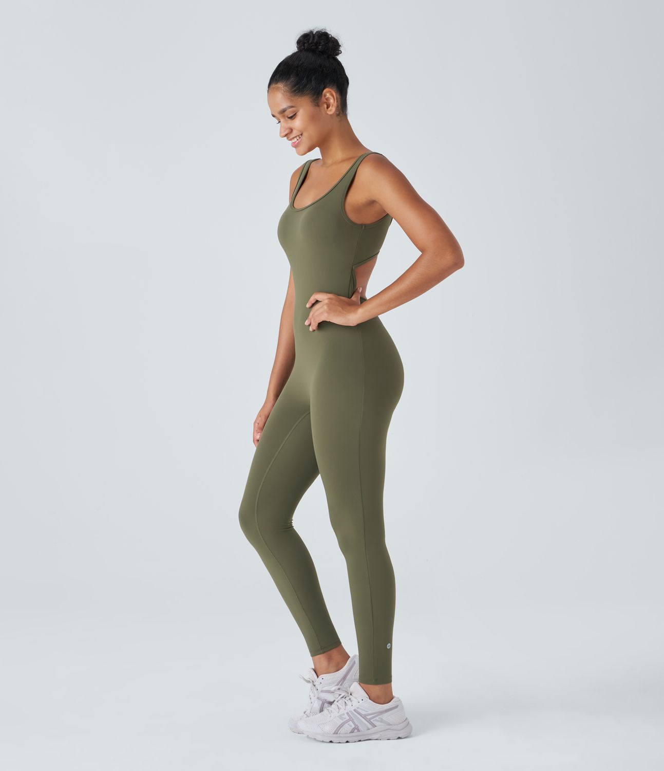 Softlyzero™ Rückenfreier, gerüschter, enger Freizeit-Jumpsuit mit U-Ausschnitt-UPF50+