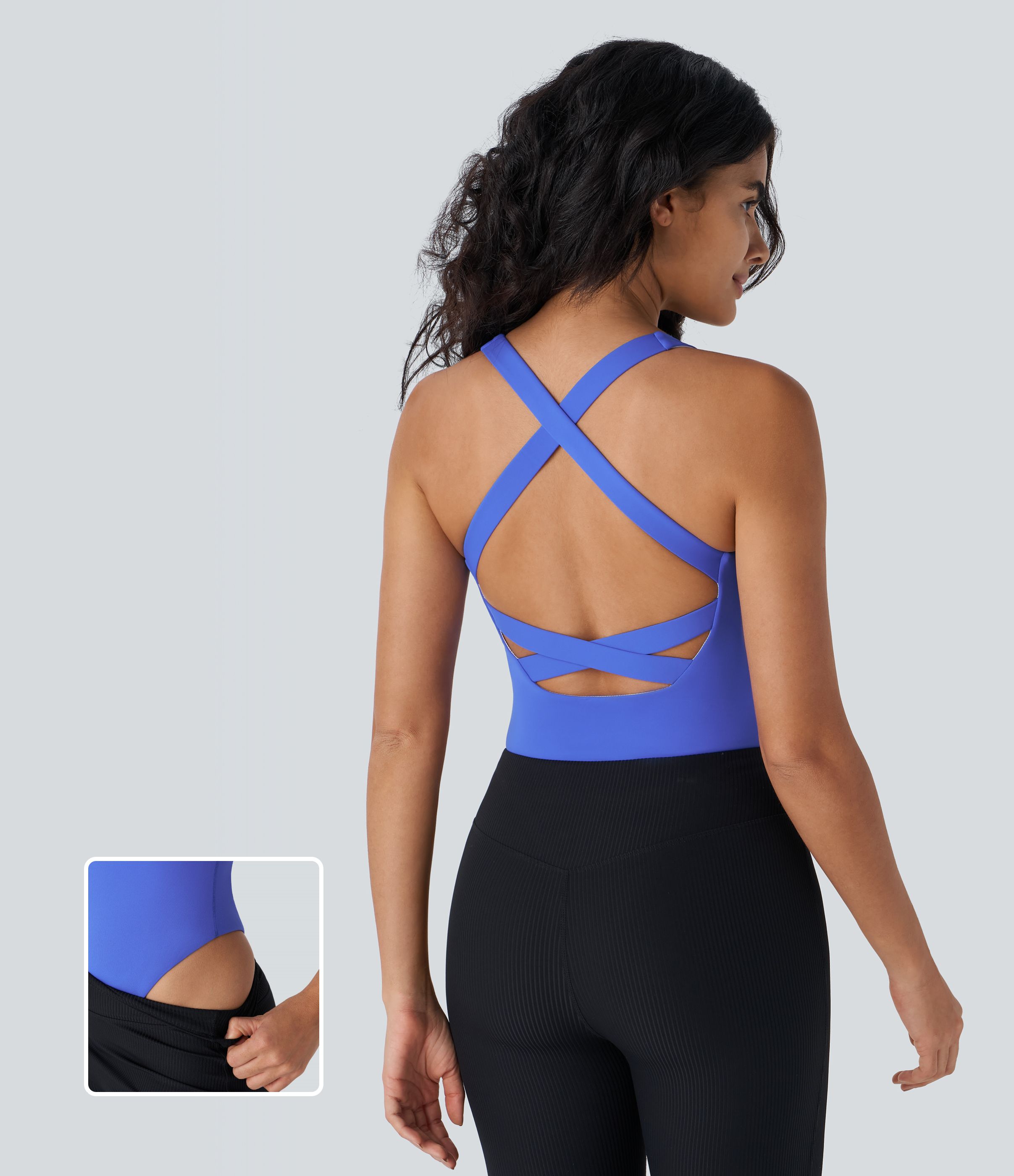 Softlyzero™ Airy Rückenfreier Yoga-Bodysuit mit überkreuzten Trägern, quadratischem Ausschnitt und Cool-Touch-UPF50+