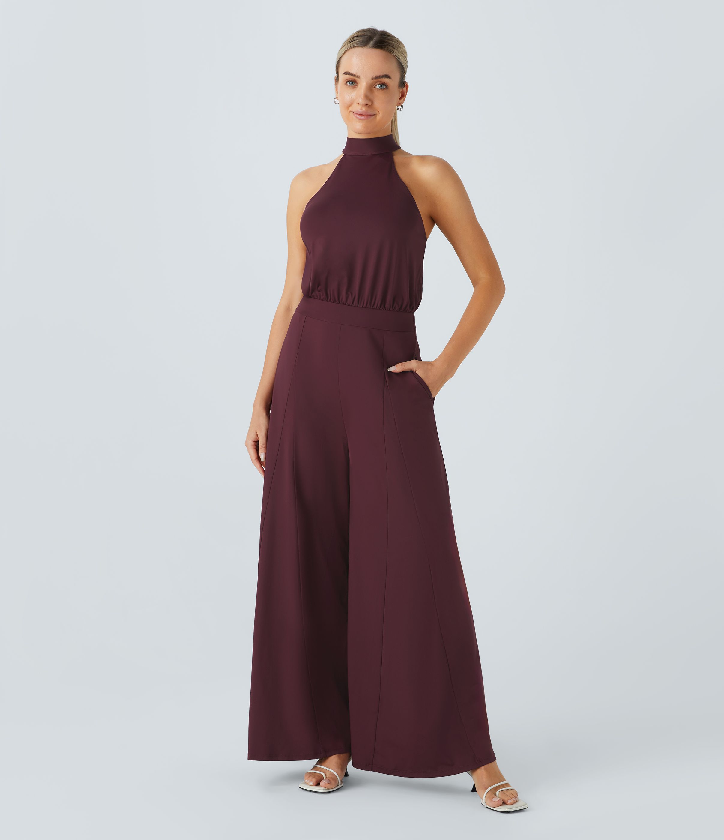 Neckholder-Jumpsuit mit Bindeband auf der Rückseite, Seitentaschen und weitem Bein
