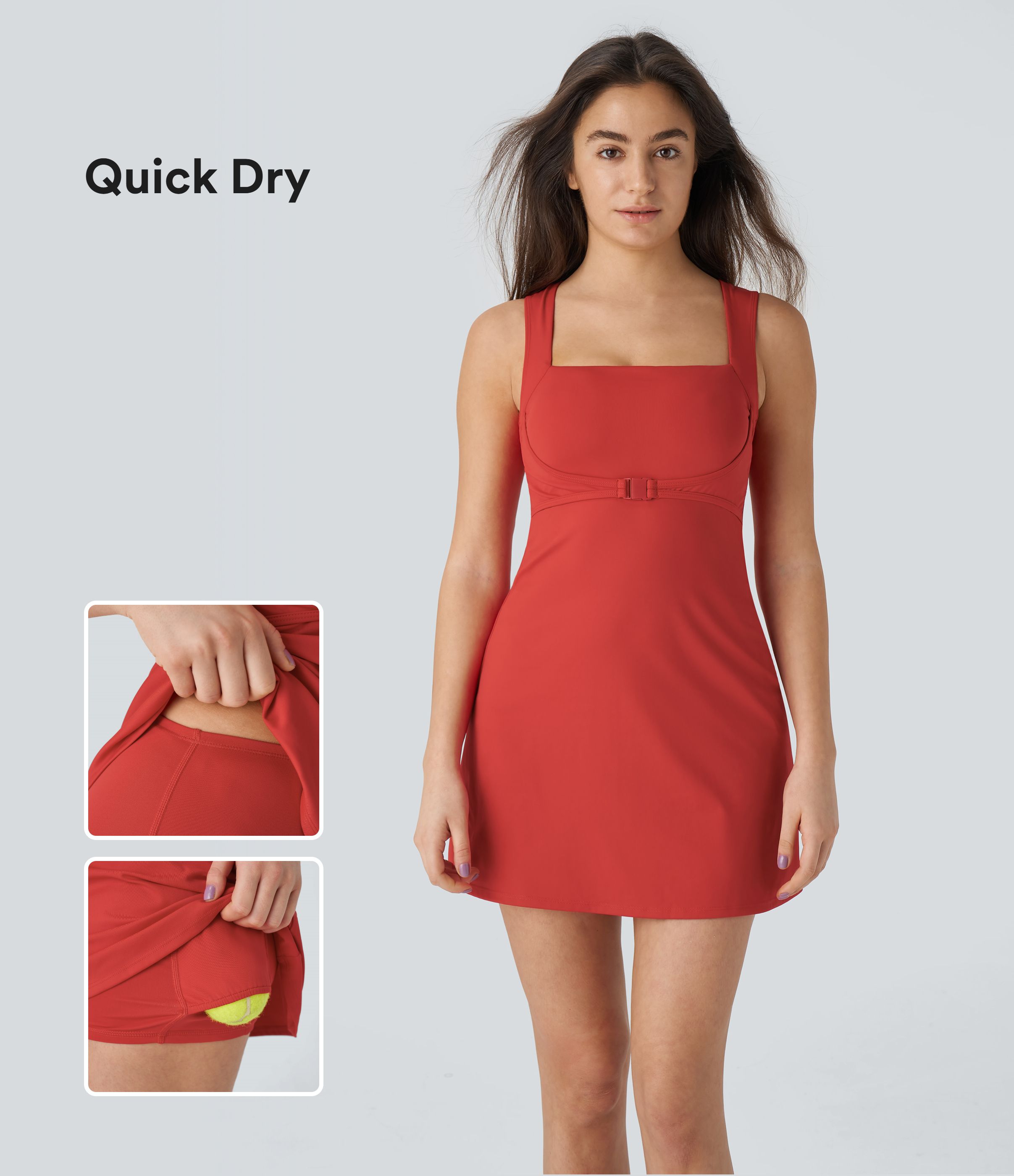 Softlyzero™ QuickDry - Ärmelloses, 2-teiliges Tennis-Mini-Aktivkleid mit quadratischem Ausschnitt und Seitentaschen