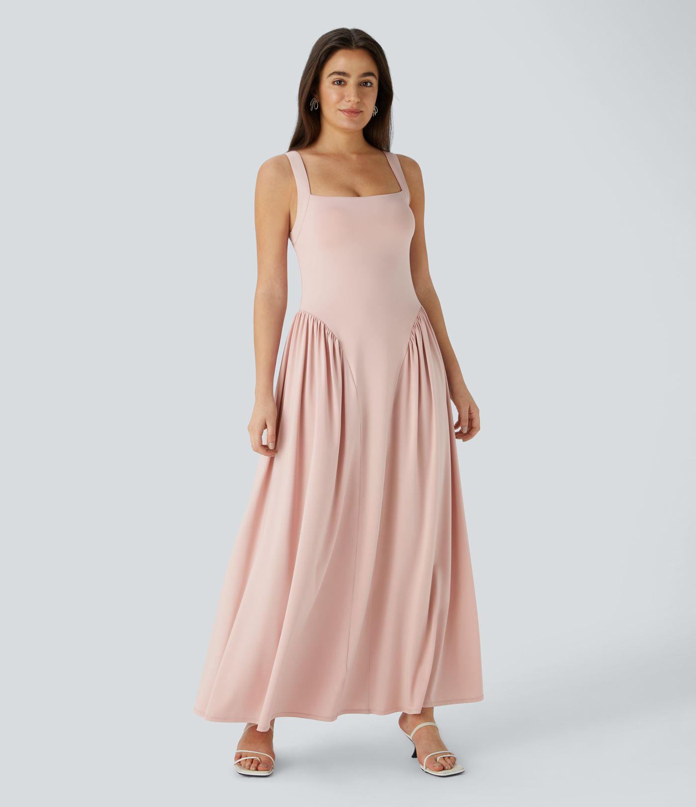Rückenfreies, plissiertes Maxikleid mit quadratischem Ausschnitt für Brautjungfern und Hochzeitsgäste