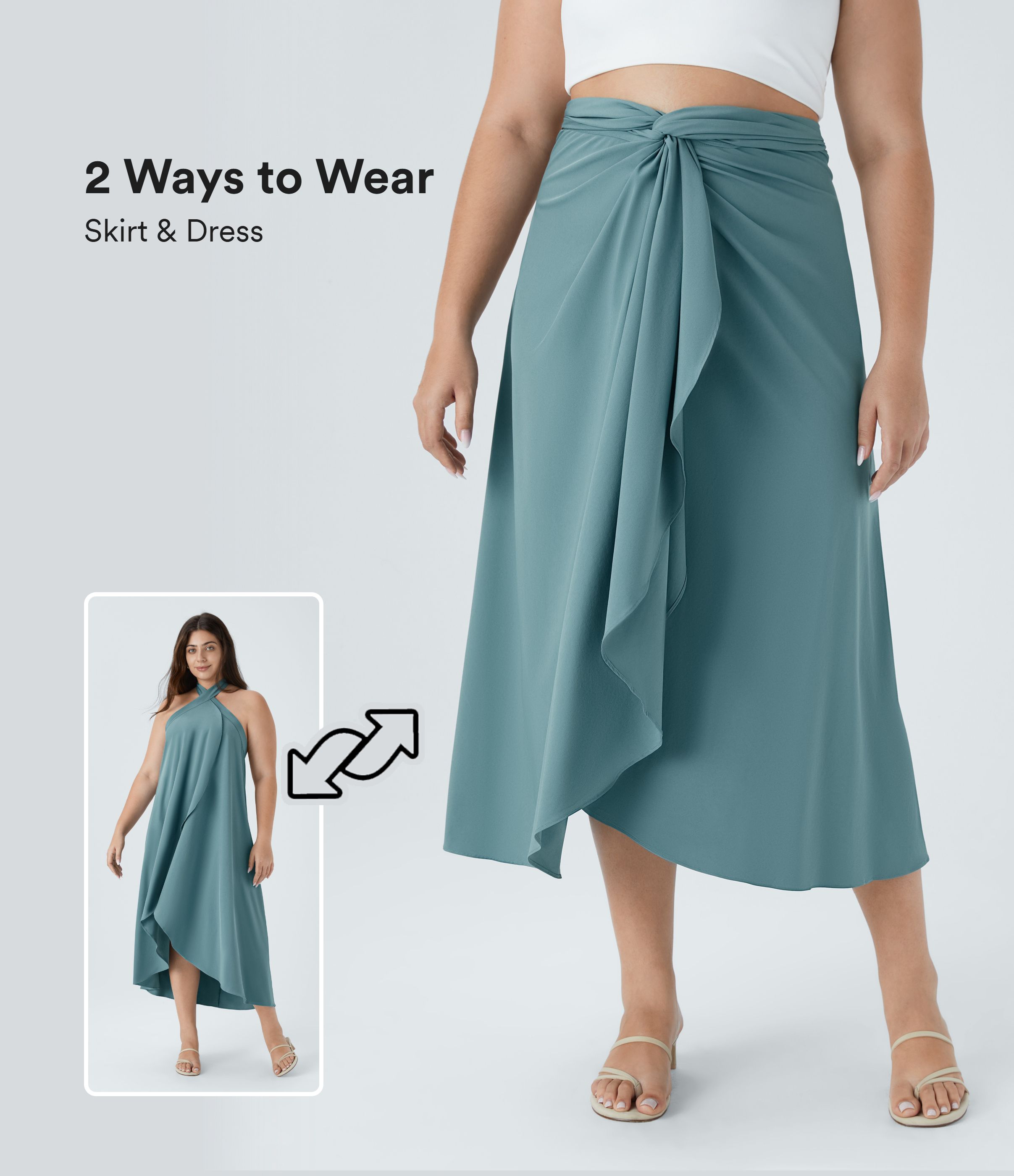 Breezeful™ Plus-Size, verdrehter Wickelrock mit hohem Bund und Bindeband hinten - schnelltrocknend