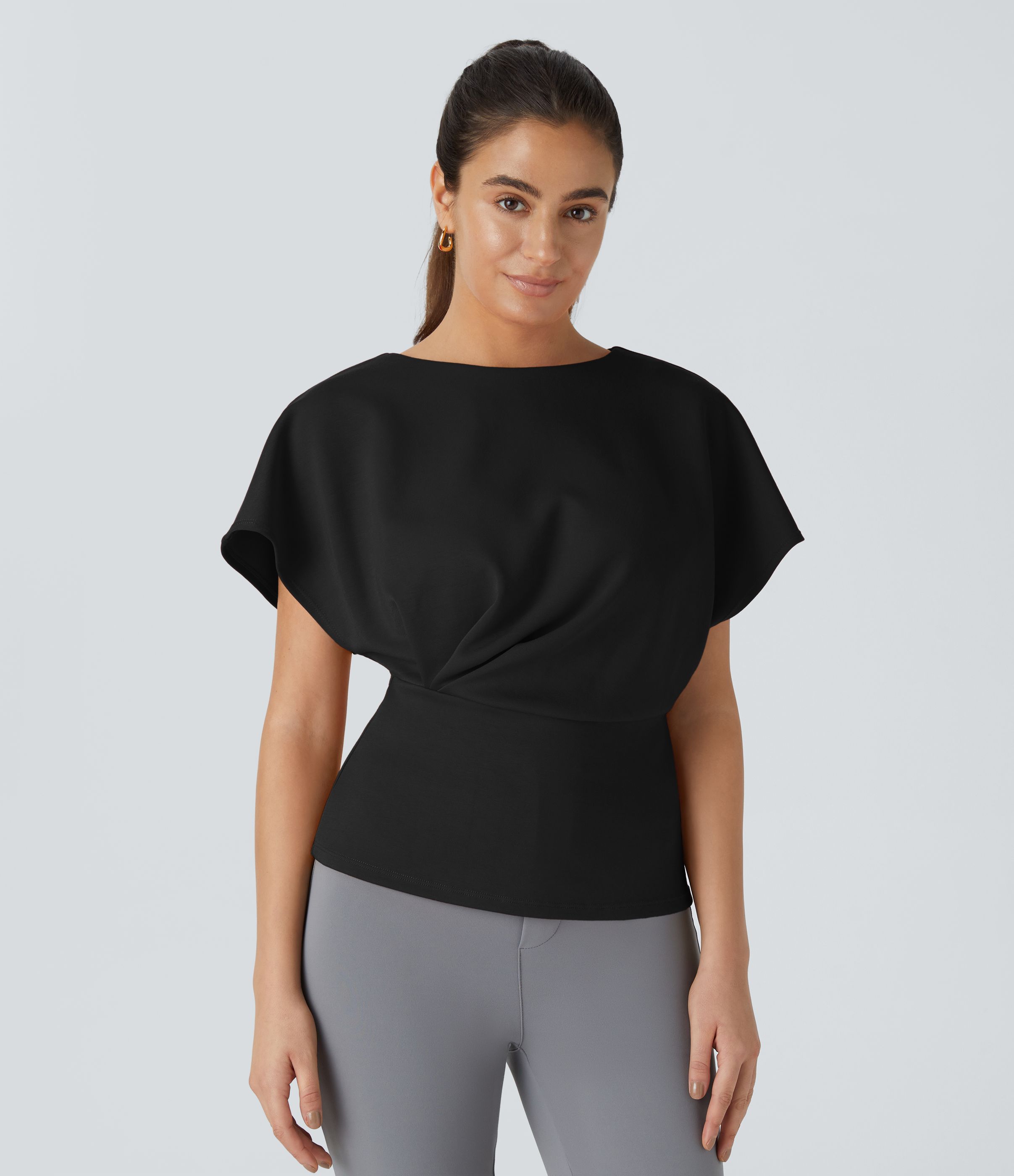 Plissiertes Arbeitsoberteil mit kurzen Ärmeln