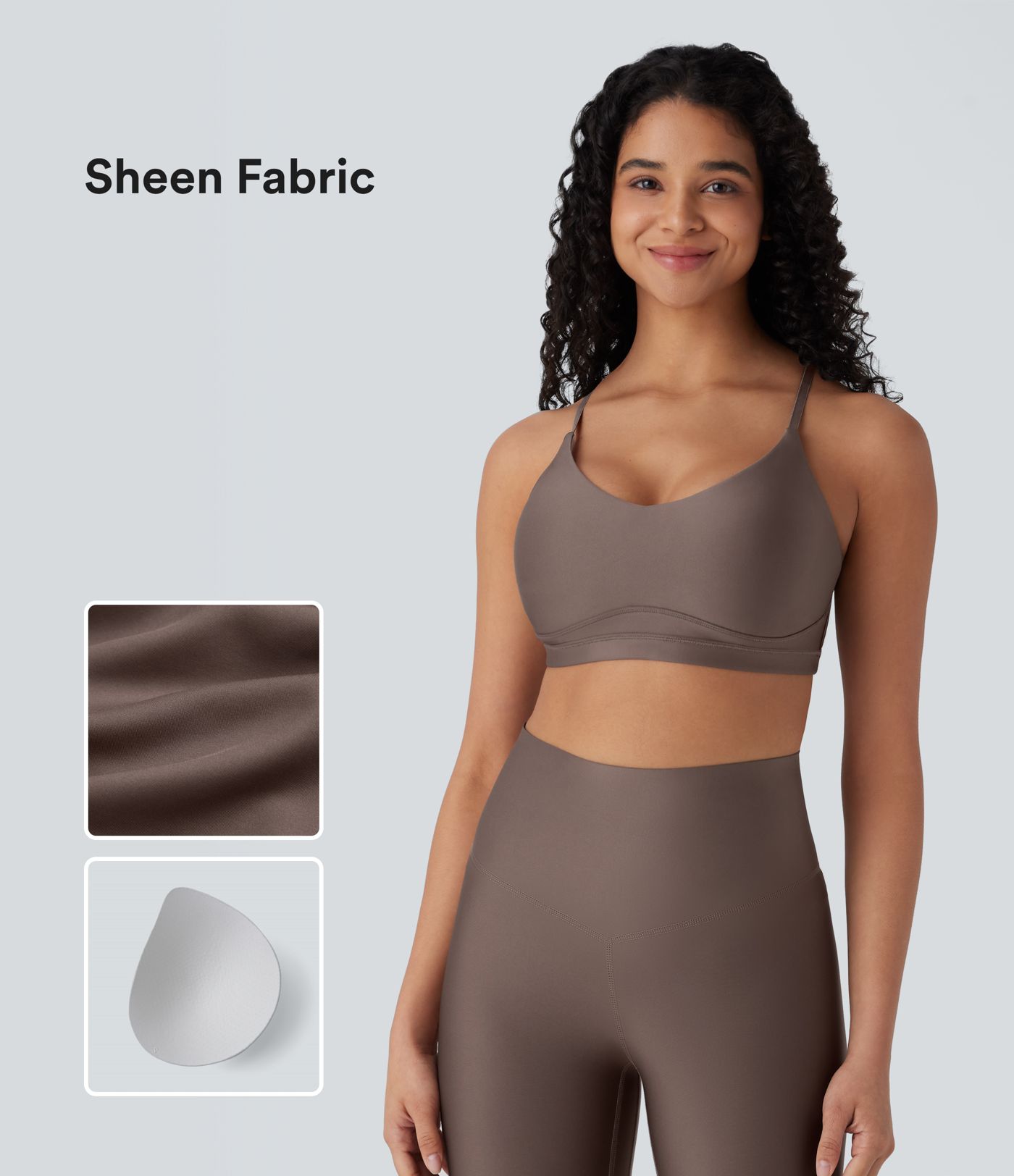 Glänzender Yoga-Sport-BH mit leichtem Support, überkreuzten Trägern und Cut-Out-Design - A-C Cups