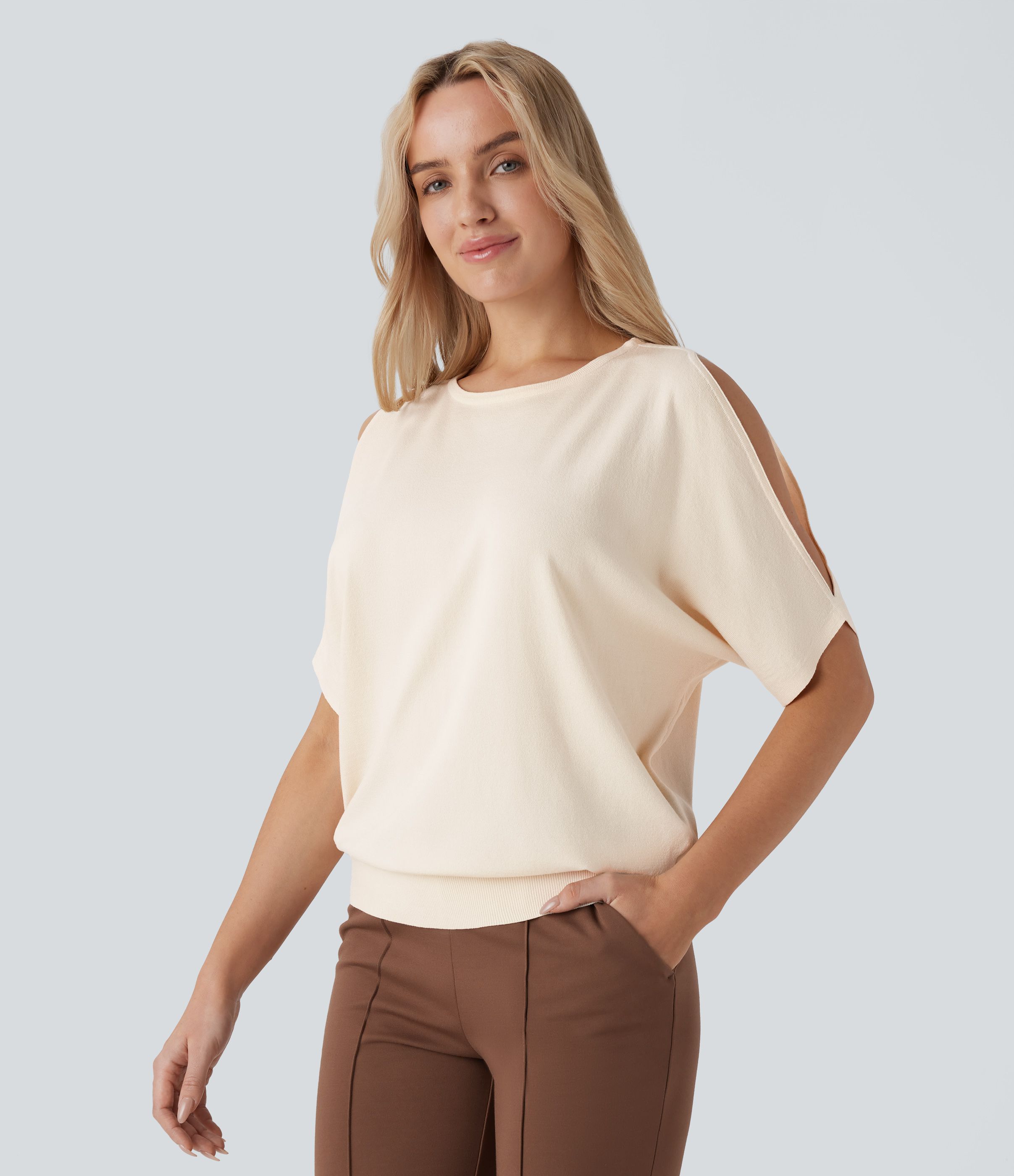 Arbeitspullover mit Rundhalsausschnitt, kurzen Ärmeln und Cold-Shoulder-Design