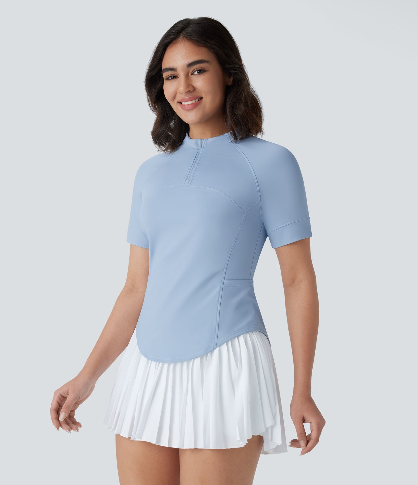 Golf-Sport-Top mit Seitentaschen, Stehkragen, Reißverschluss und abgerundetem Saum