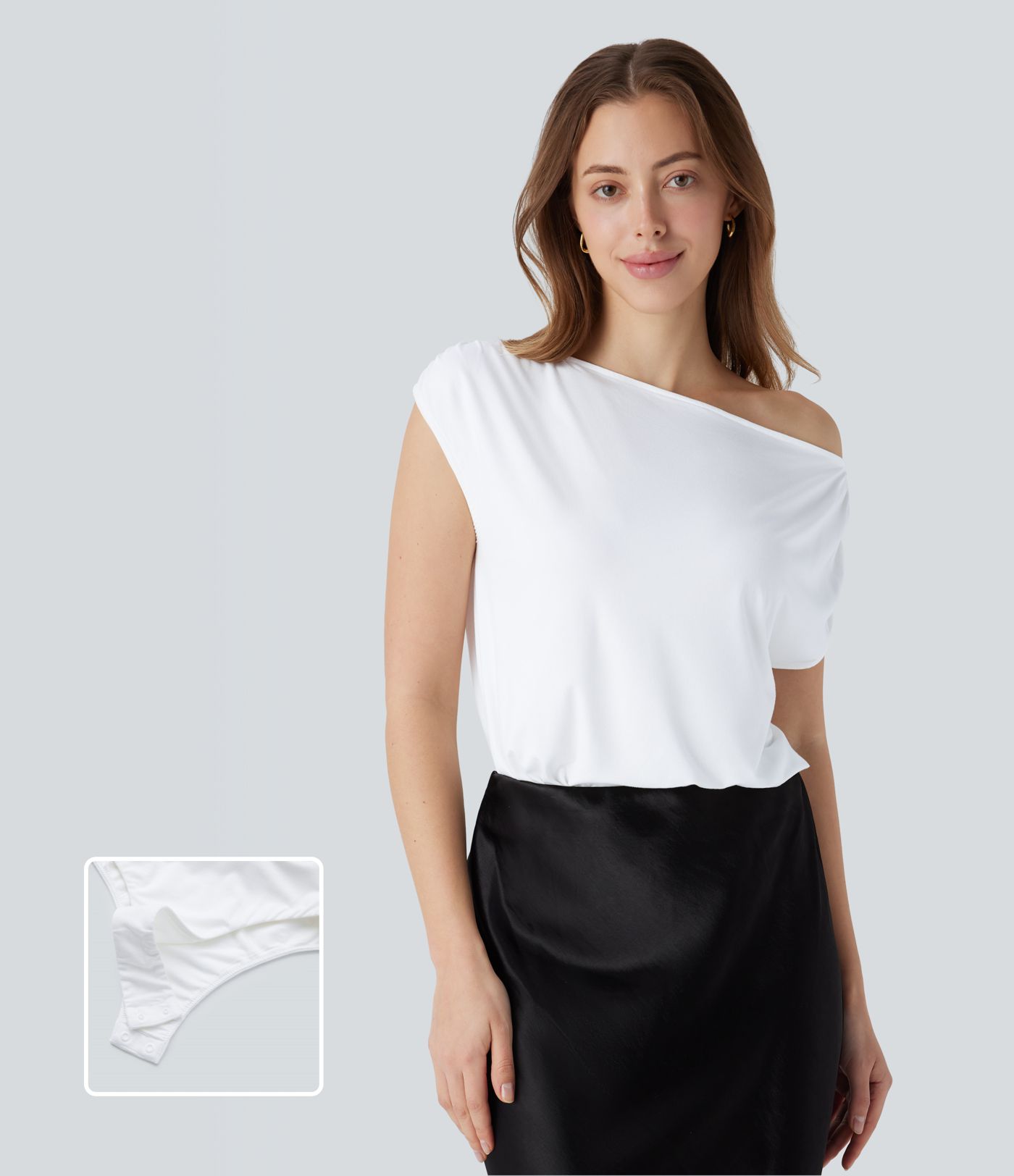Geraffter Bodysuit mit Druckknopfverschluss und asymmetrischem Schnitt