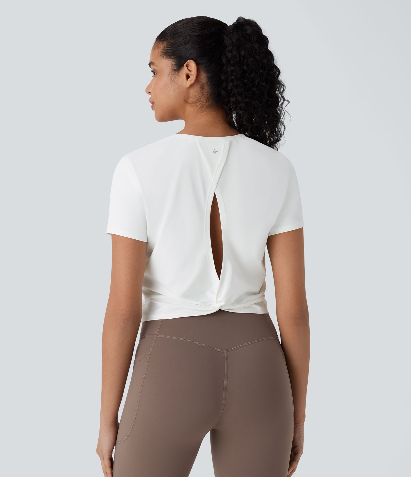 Kurzes, verdrehtes Wander-Sport-Top mit Cut-Outs