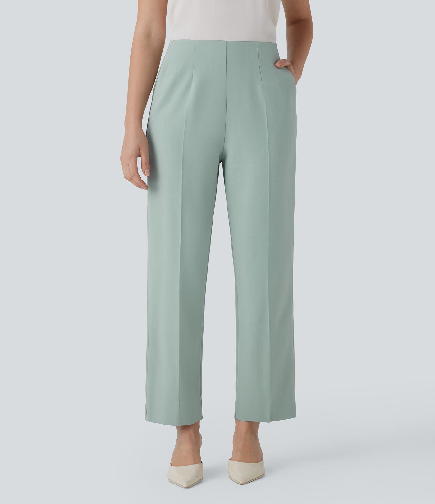 Schmal zulaufende Stoffhose mit hohem Bund, Seitentaschen und unsichtbarem Reißverschluss