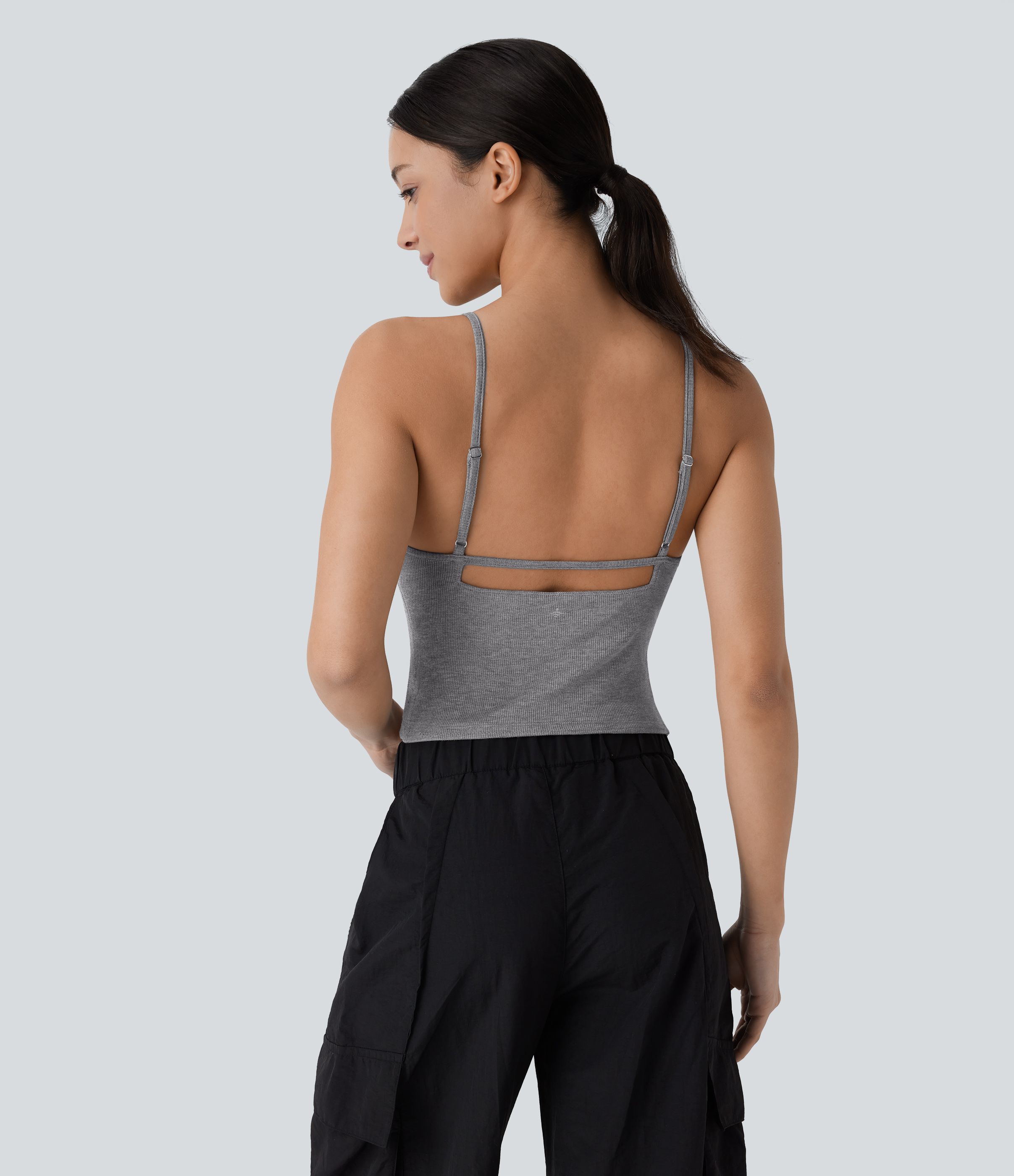 Hochelastisches, hautfreundliches, rückenfreies Yoga-Tanktop mit Rundhalsausschnitt, verstellbaren Trägern und Cut-Outs