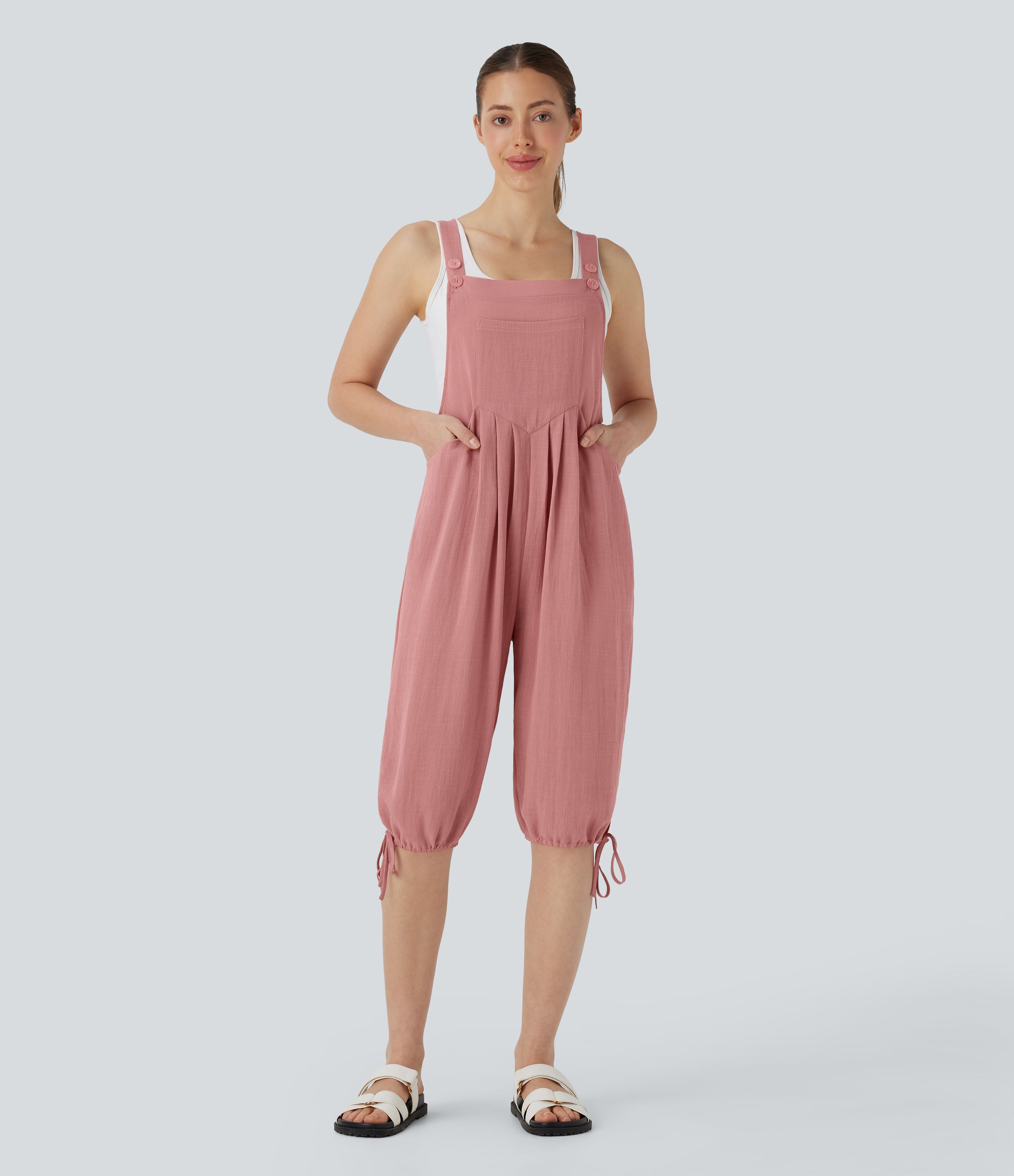 Lässiger Overall mit Leinengefühl, mehreren Taschen, verstellbaren Trägern und Kordelzug