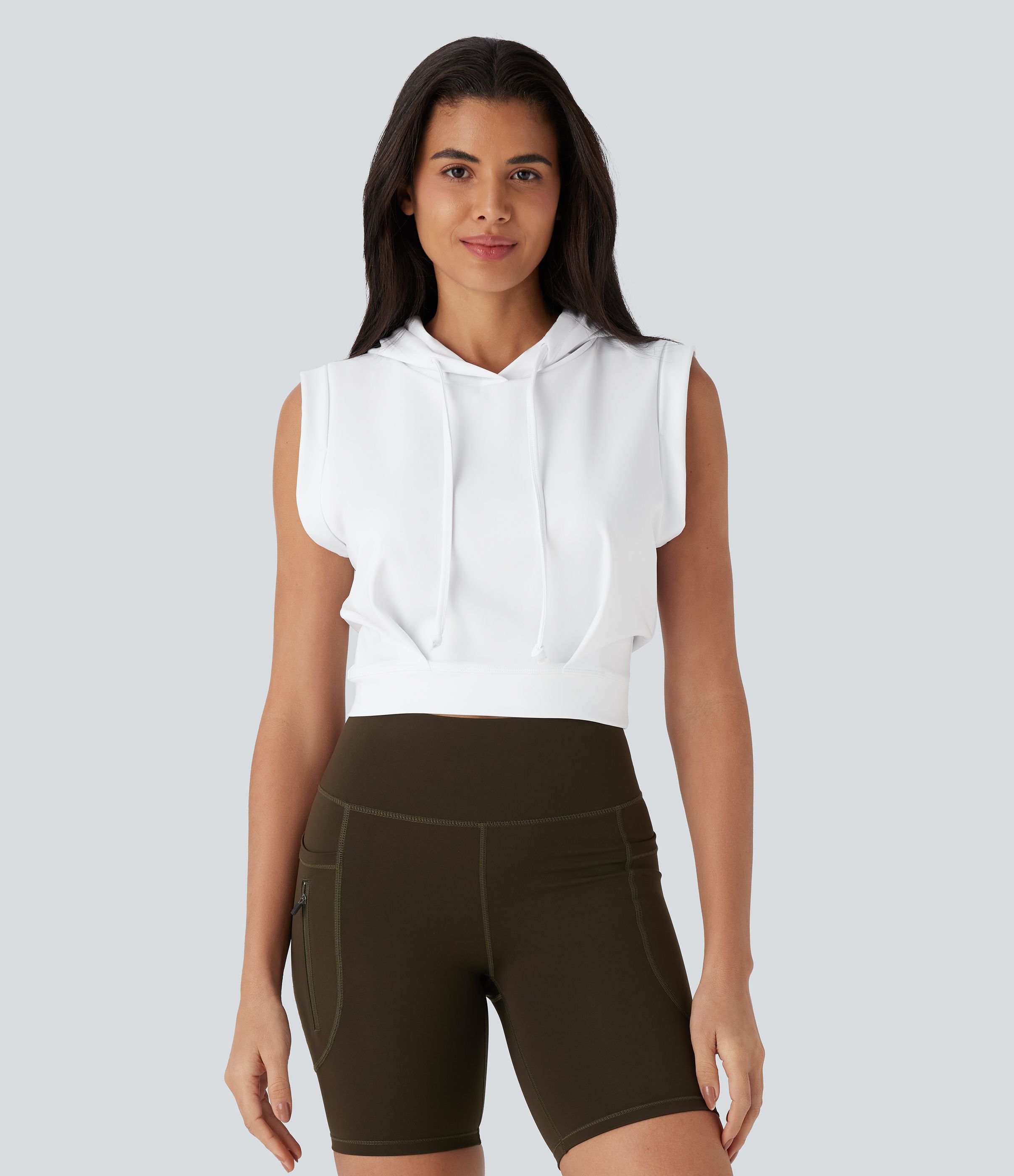 Kurzes Freizeittop mit Kapuze, Kordelzug und Flügelärmeln