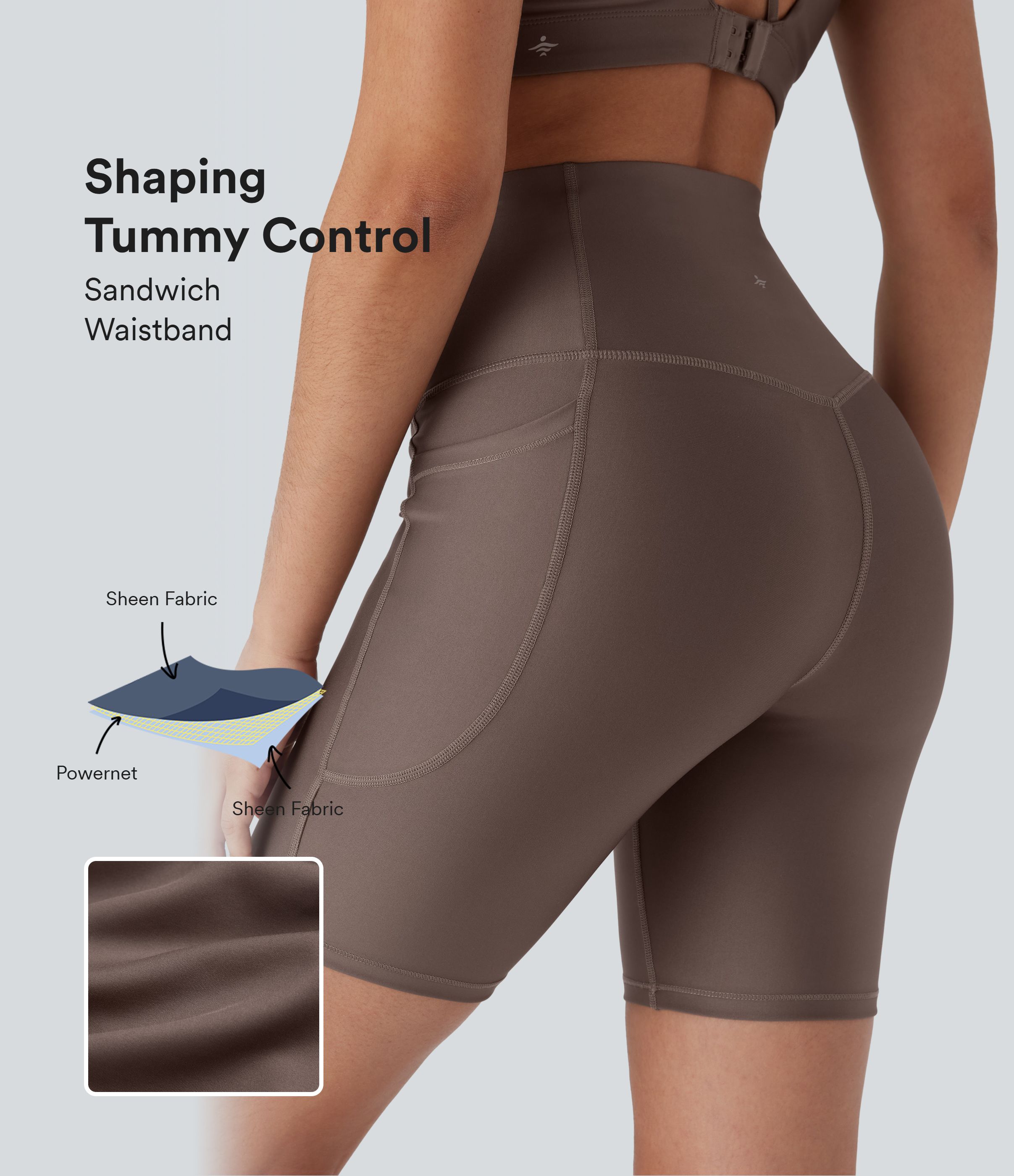 Workout-Shorts mit hohem Bund, Tasche und Bauchkontrolle - 17,8 cm