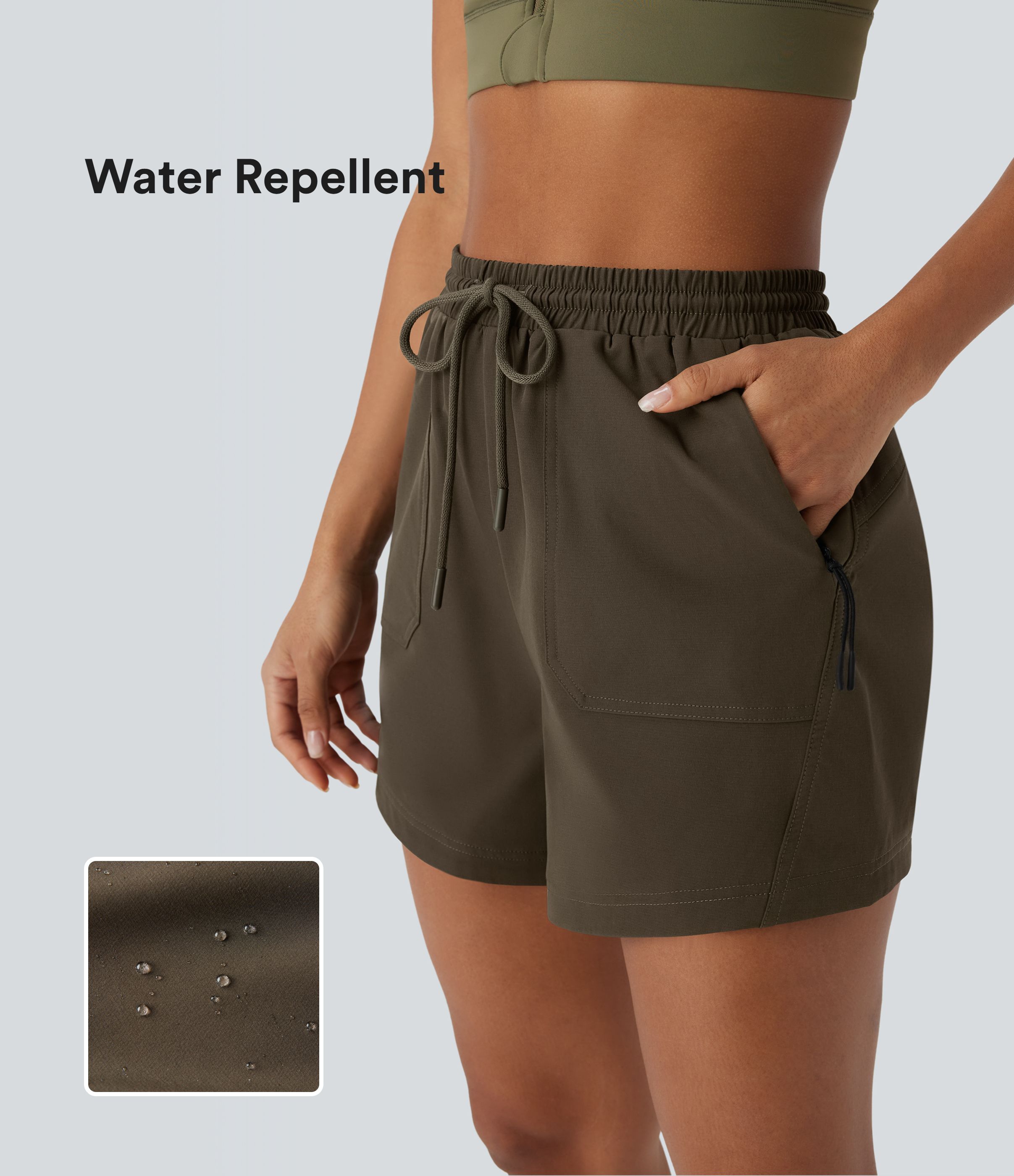 Wasserabweisende Wandershorts mit hoher Taille, Kordelzug und seitlichen Reißverschlusstaschen