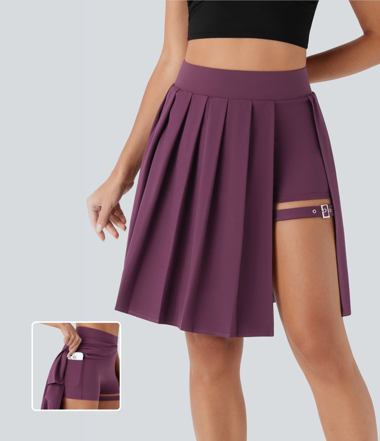 Breezeful™ Hoch taillierter, plissierter 2-in-1-Freizeitrock mit verstellbarer Schnalle, schnelltrocknend, mit Seitentasche - längere Länge