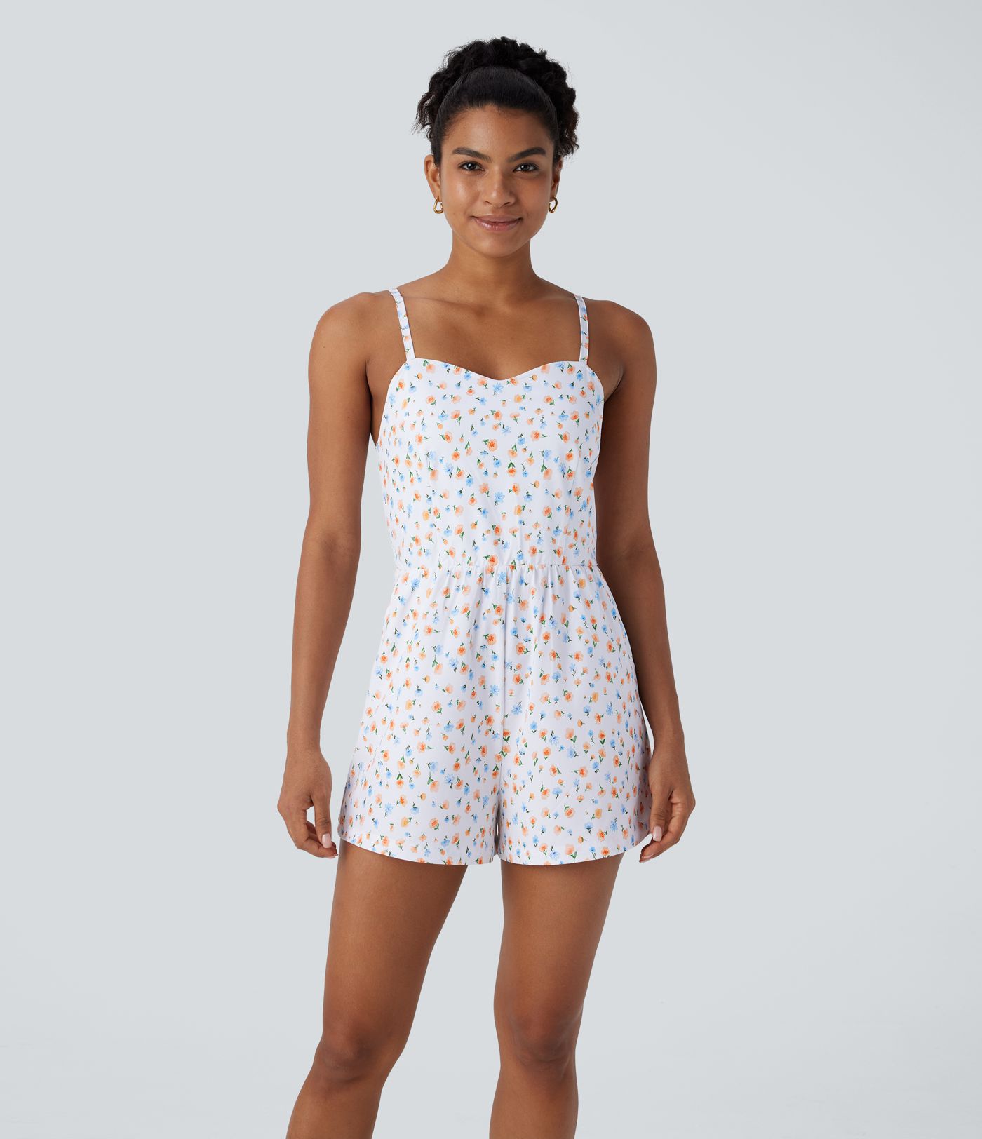 Lässiger, geraffter Jumpsuit mit Seitentaschen, verstellbaren Trägern und Blumendruck
