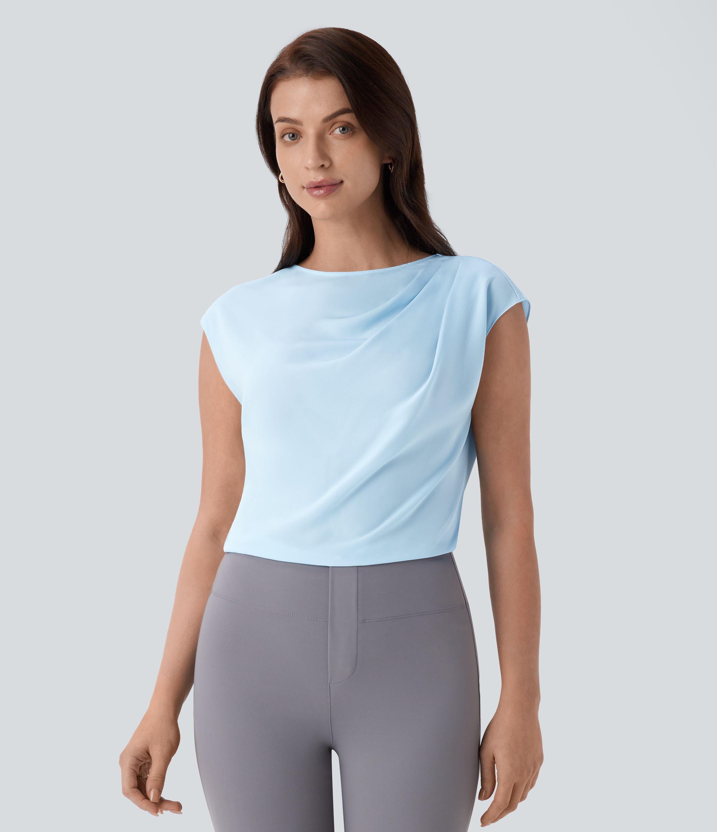 Gerafftes Arbeitsoberteil mit U-Boot-Ausschnitt, Flügelärmeln und unsichtbarem Reißverschluss