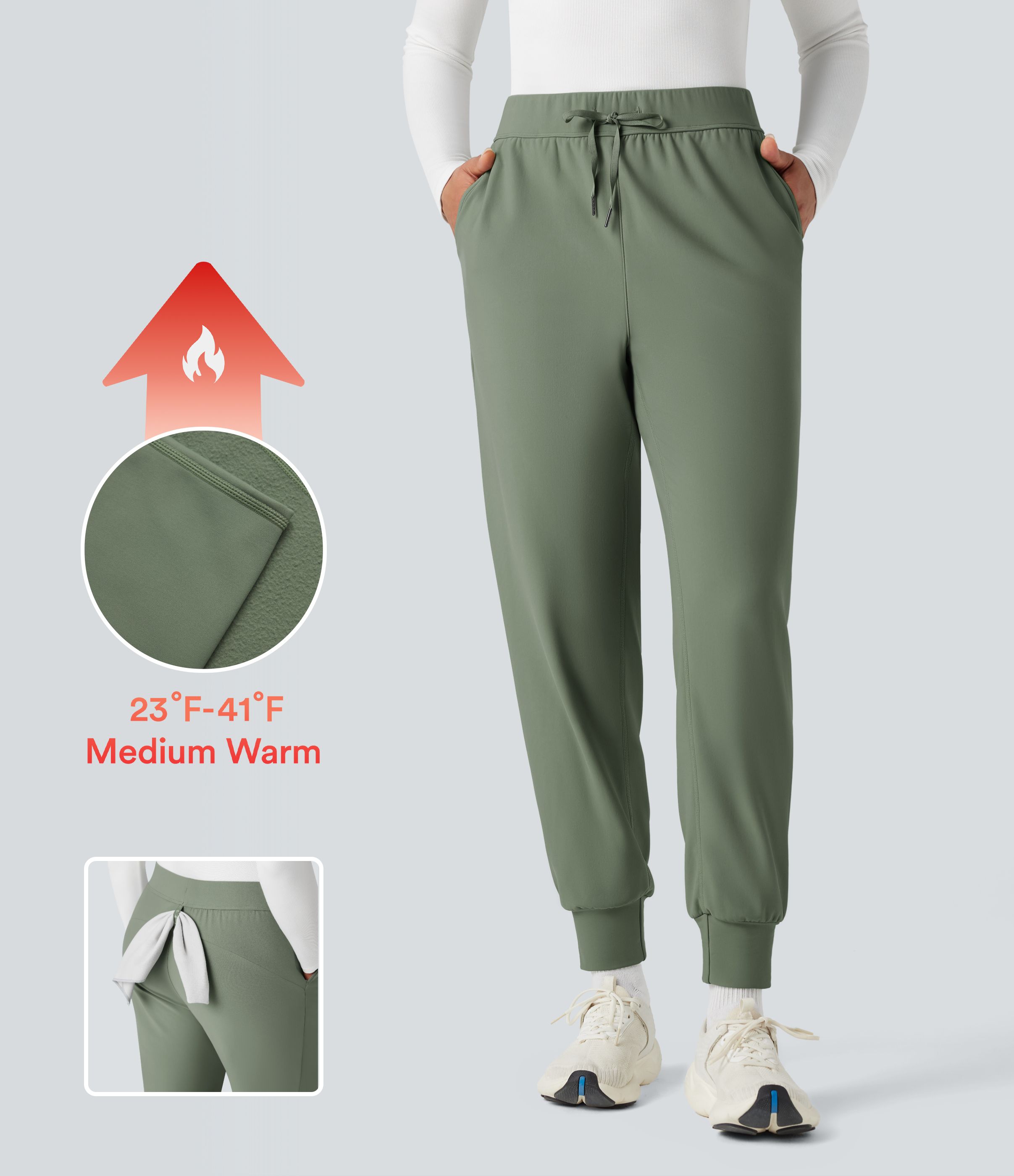 Strapazierfähige, wasserabweisende Laufjogginghose aus Fleece mit mittlerer Leibhöhe und Taschen- wärmend