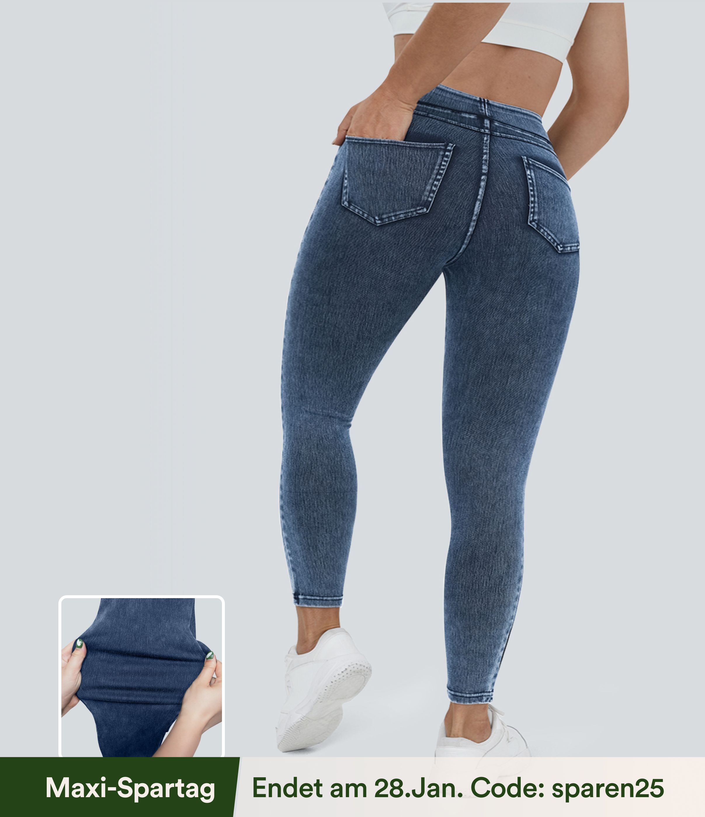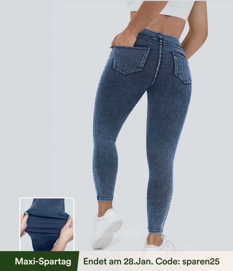 Halara Flex™ Plus Size Jeans Jeggings aus elastischem Strick-Denim mit hohem Bund und Gesäßtaschen