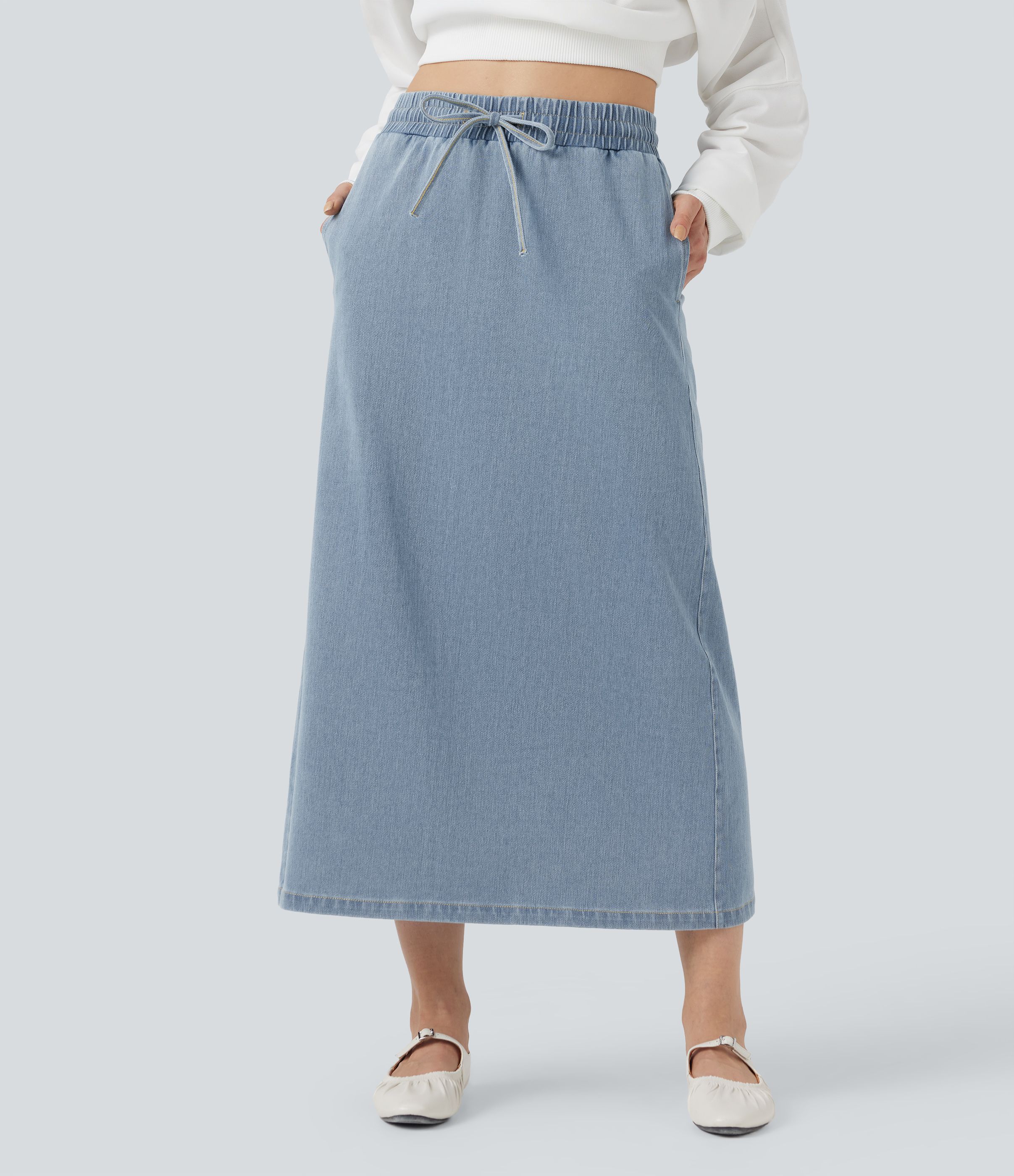 Halara Flex™ - Freizeit-Midi-Jeansrock mit hohem Bund, mehreren Taschen, Kordelzug und Schlitz