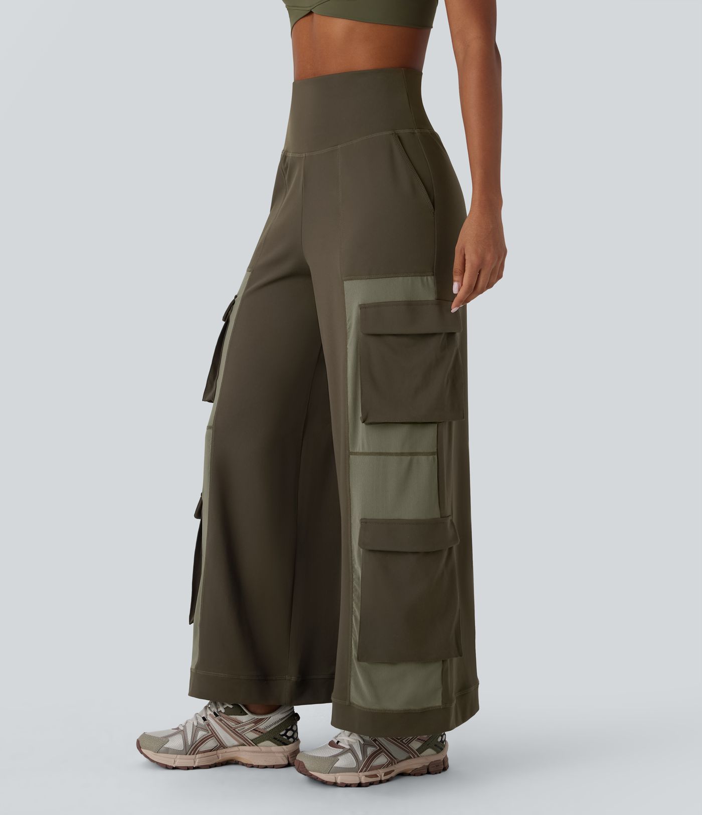 DayStretch - Yoga-Cargo-Hose mit hohem Bund, Seitentaschen und Patchwork-Details