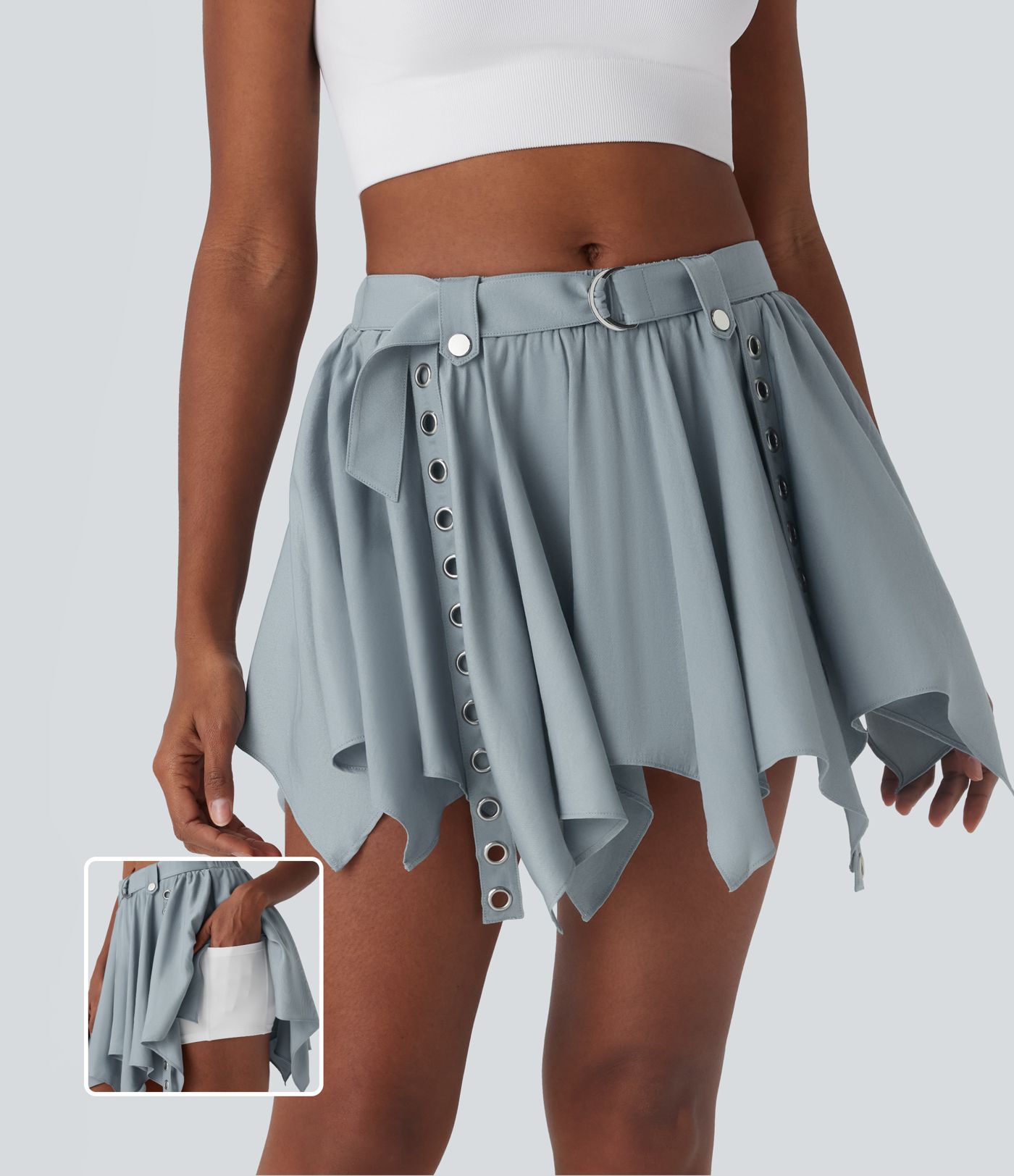 2-in-1 Freizeit-Minirock mit mittelhohem Bund, Seitentaschen, Gürtel und geschlitztem Saum