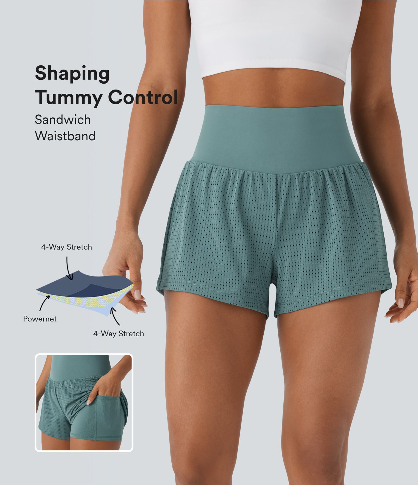 Perforierte 2-in-1 Yoga-Shorts mit superhohem Bund und Bauchkontrolle