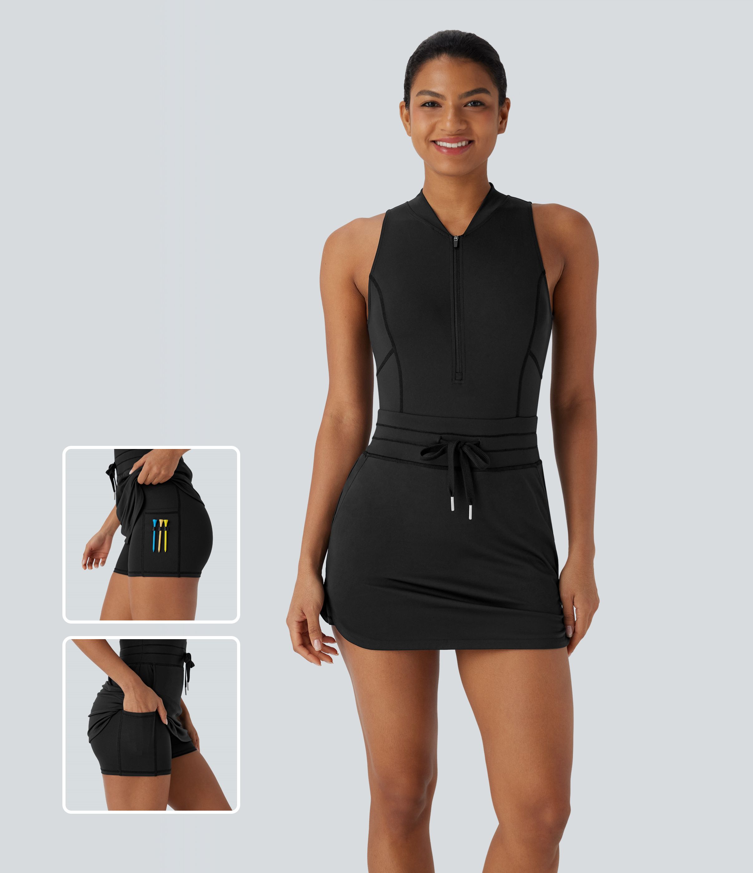 Softlyzero™ QuickDry Baseball-Kragen, halber Reißverschluss, ärmellos, Kordelzug, mehrere Taschen, 2-in-1-Minigolf-Aktivkleid, Golf-Tee-Tasche