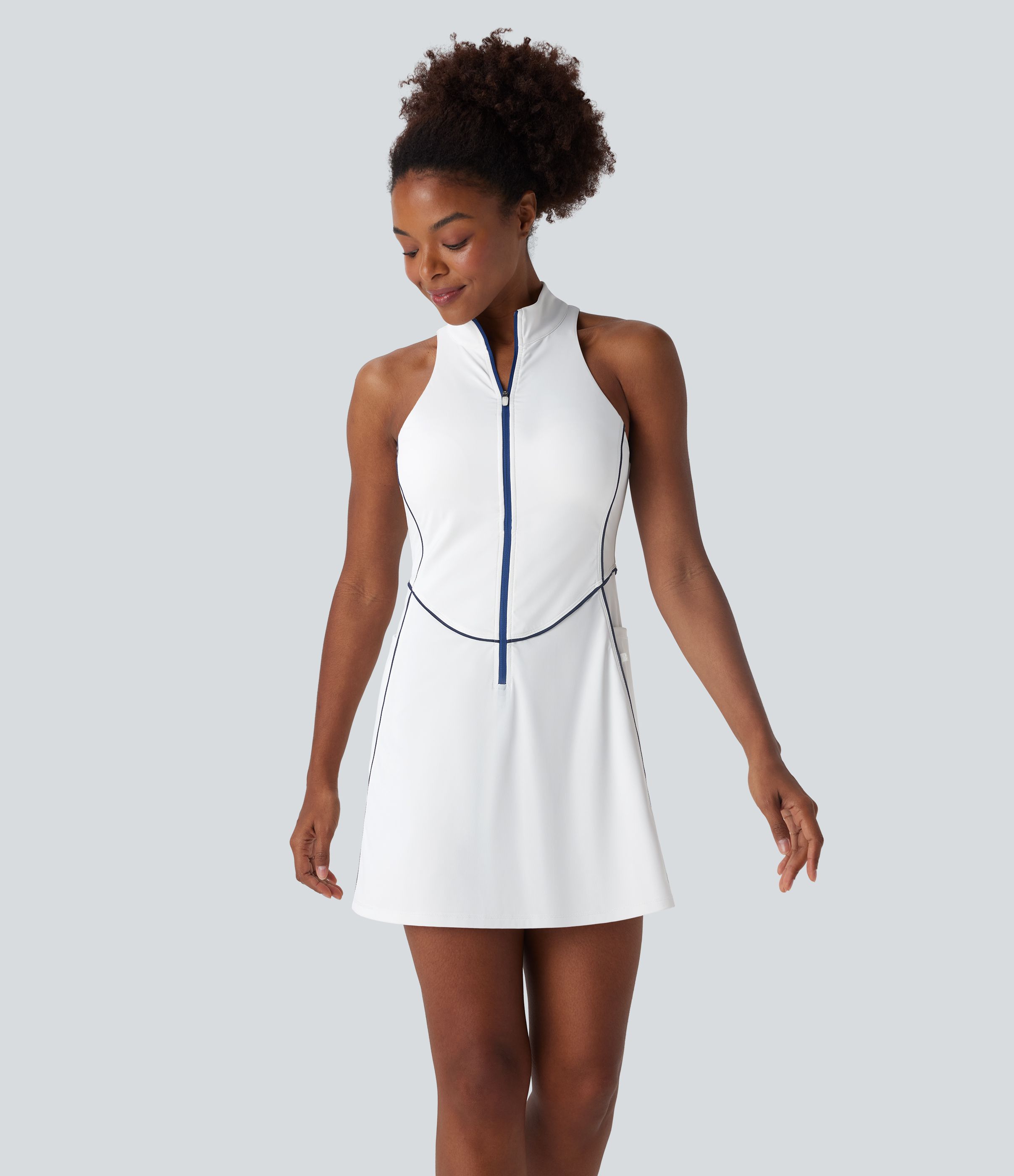 Softlyzero™ QuickDry ärmelloses Mini-Golf-Aktivkleid mit halbem Reißverschluss und Seitentaschen – Golf-Tee