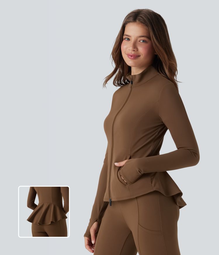 DayStretch - Slim-Jacke mit Stehkragen, Reißverschluss, Seitentaschen, Daumenlöchern und Rüschensaum