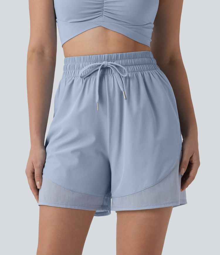 Breezeful™ - Baggy Yoga-Shorts mit hohem Bund, Seitentaschen, Kordelzug und Kontrast-Mesh - 12,7 cm, schnelltrocknend