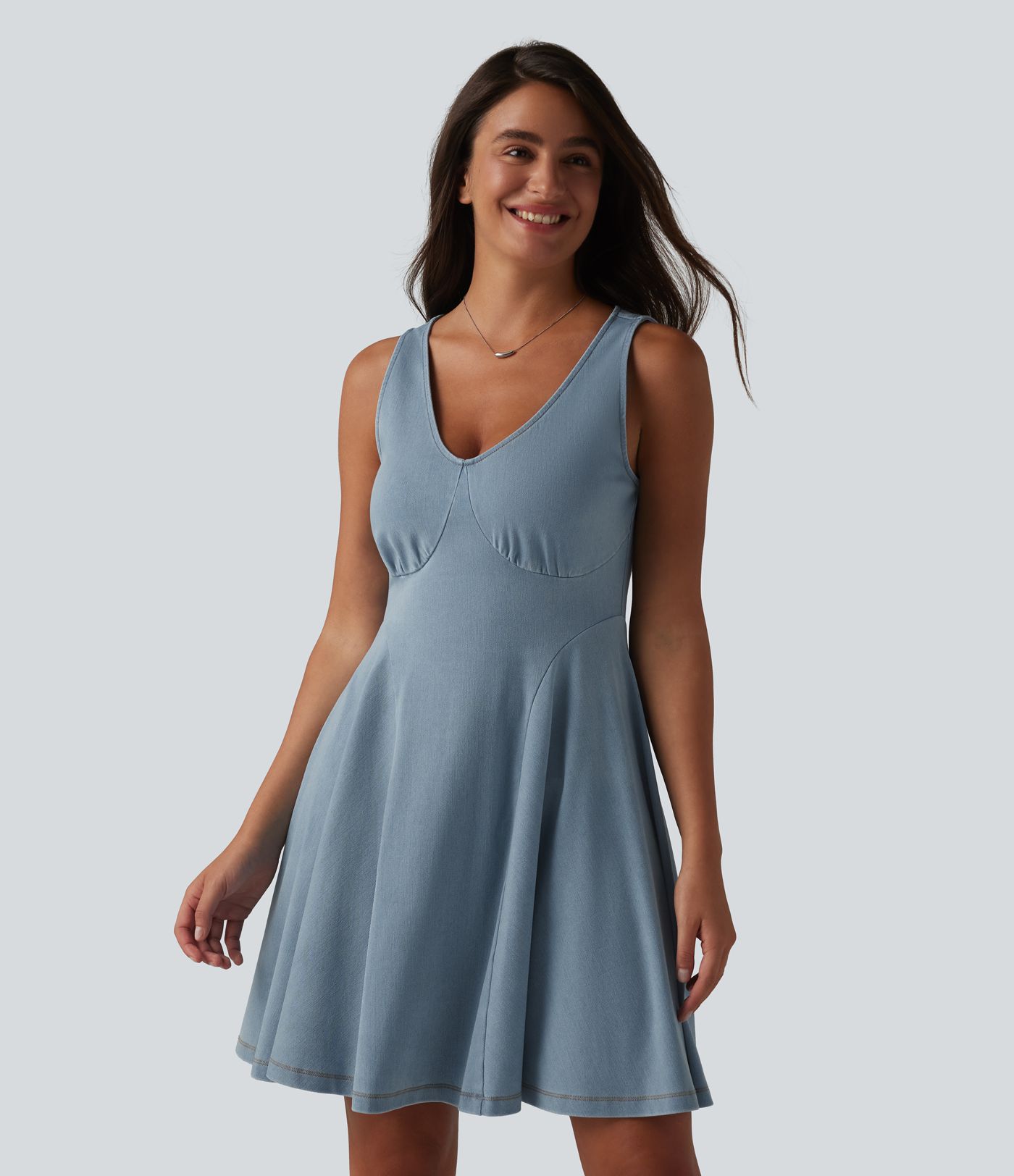 Halara Flex™ - Ausgestelltes, ärmelloses Minikleid aus verwaschenem Lyocell-Denim mit V-Ausschnitt