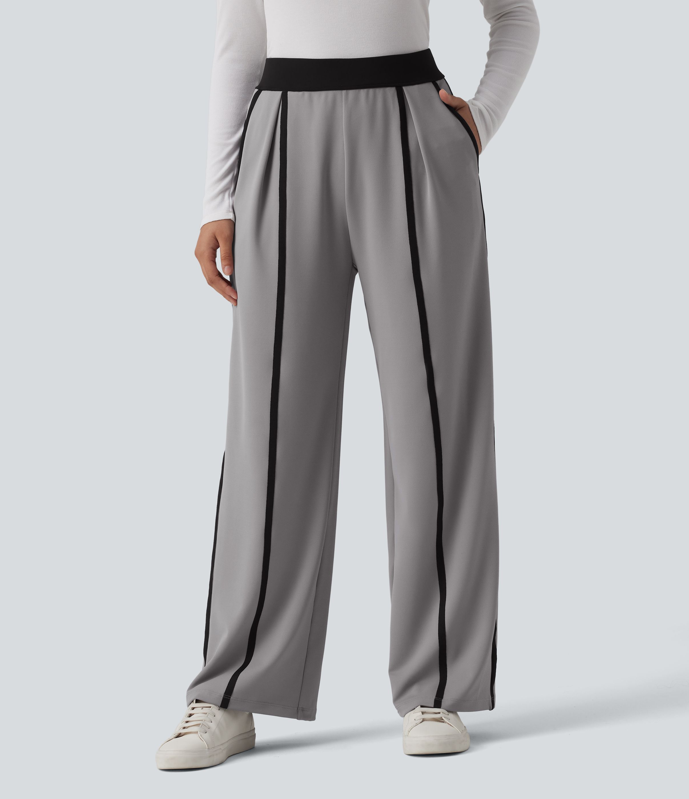 Halara Flex™ - Stoffhose aus Crêpe mit hohem Bund, Seitentaschen, Farbblock und geradem Bein