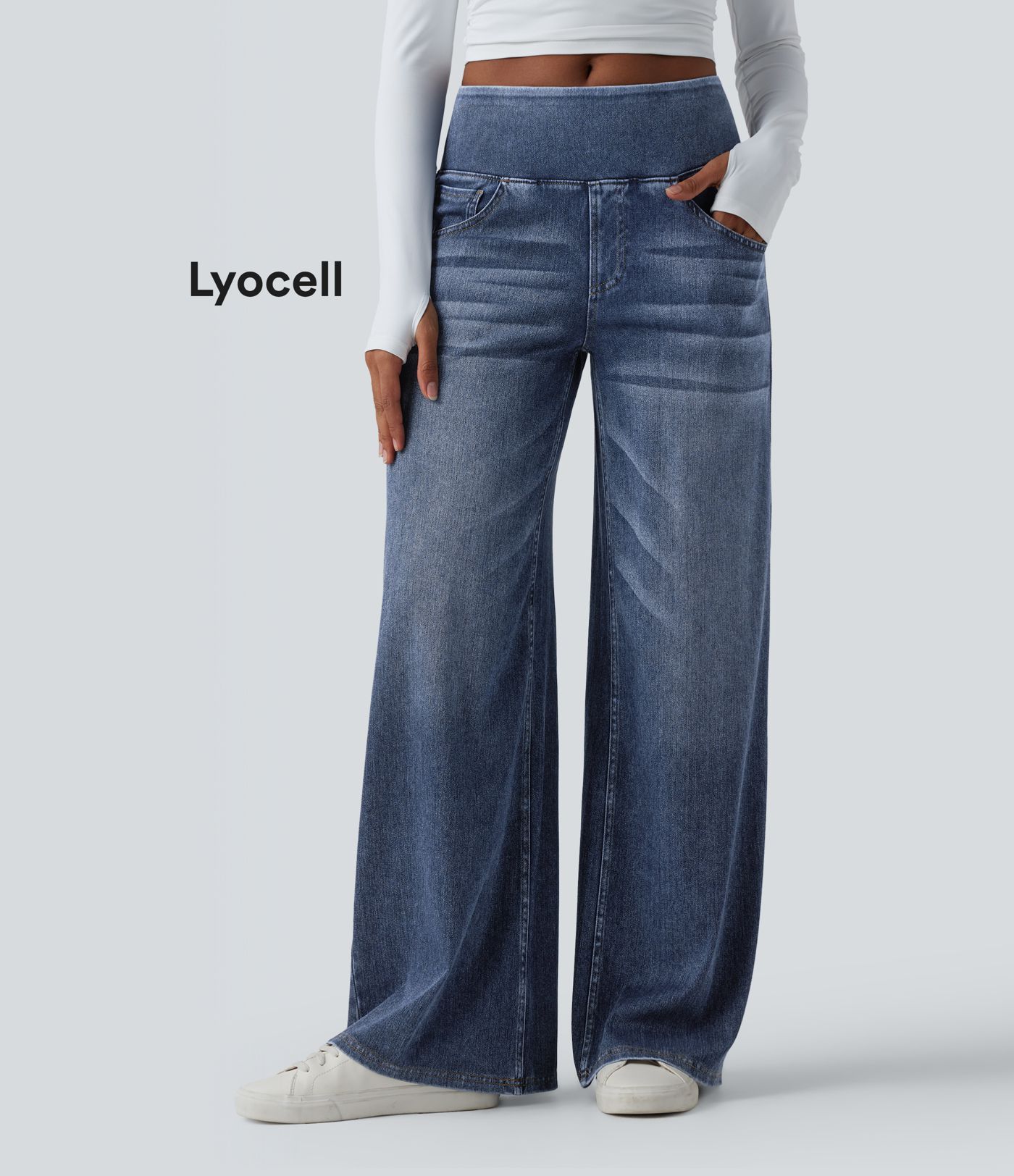 Halara Flex™ - Lässige, gewaschene Baggy-Jeans mit mittelhohem Bund, mehreren Taschen und weitem Bein