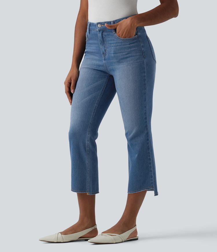 Halara Flex™ - Lässige, kurze Bootcut-Jeans mit mittelhohem Bund, mehreren Taschen und High-Low-Design