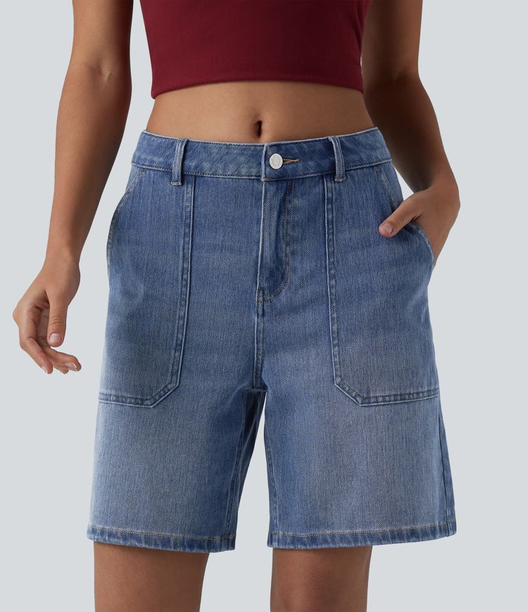 Halara Flex™ - Lässige, verwaschene Baggy-Shorts mit mittelhohem Bund und mehreren Taschen