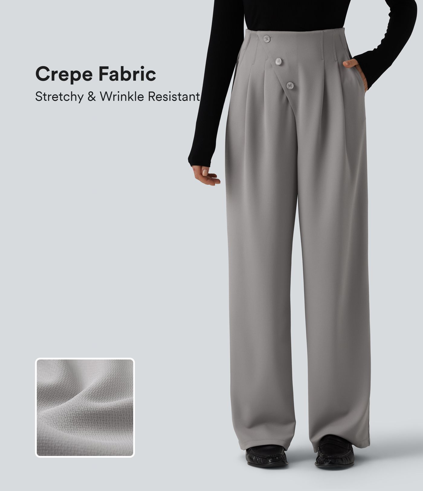 Halara Flex™ - Bürohose aus Crepe-Stoff mit superhohem Bund, Seitentaschen und weitem Bein