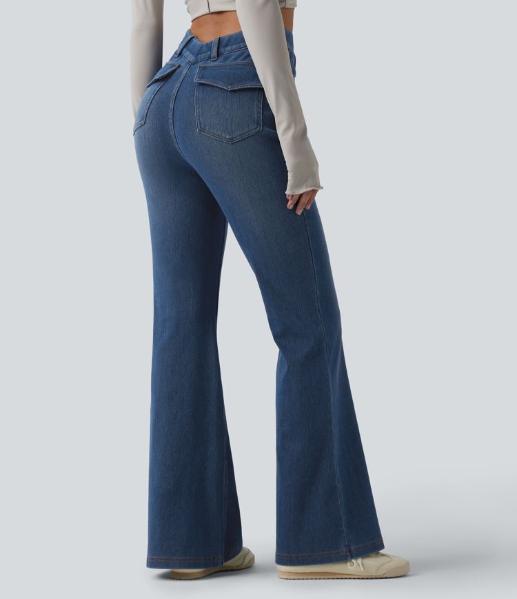 Halara Flex™ - Lässige Schlagjeans mit hohem V-förmigem Bund und mehreren Taschen