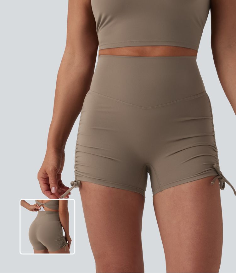 Halara UltraSculpt™ - Geraffte Yoga-Bikershorts mit hohem Bund, Bundtasche und seitlicher Schnürung