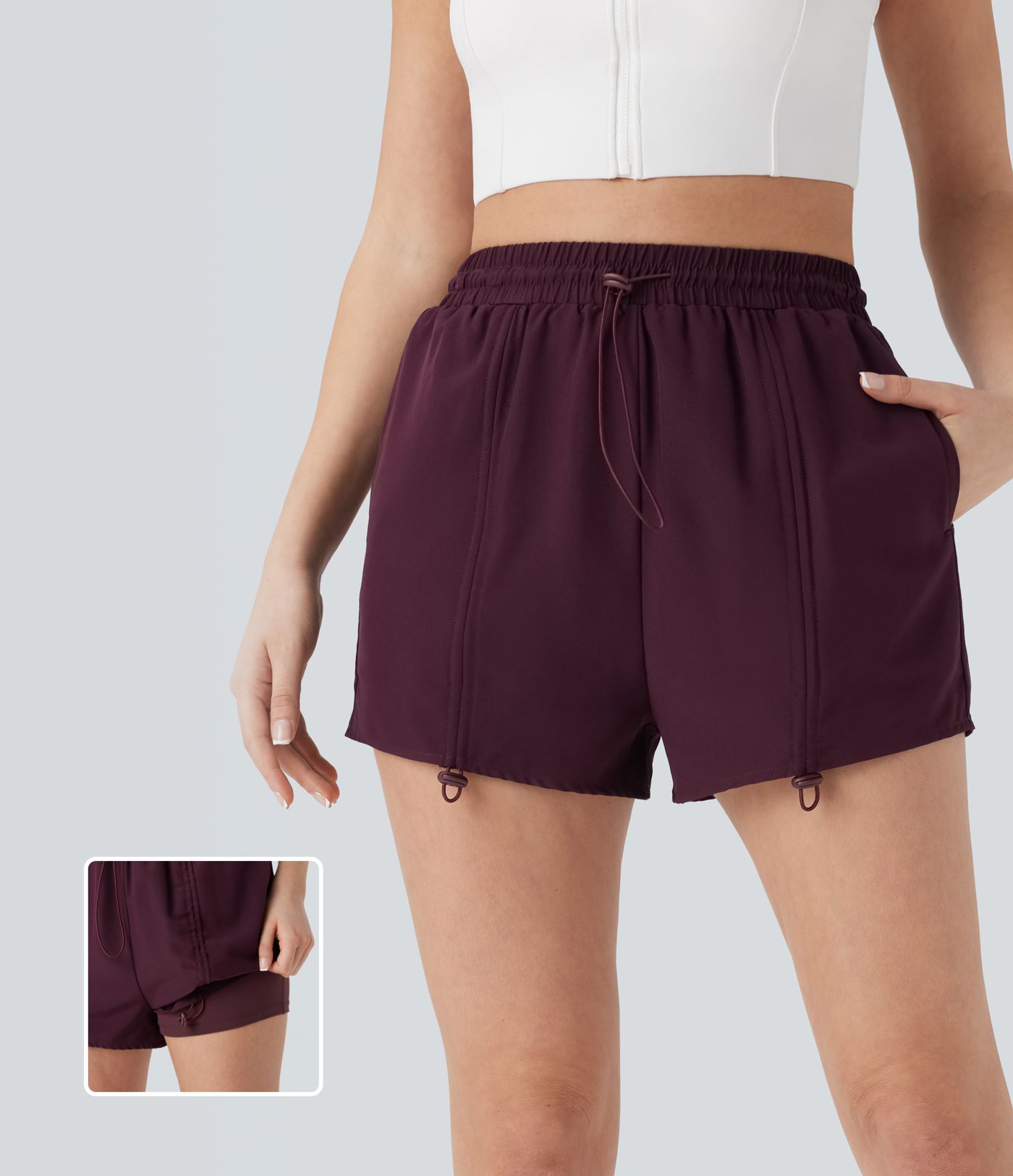 2-in-1 Yogashorts mit hohem Bund, Seitentaschen und Kordelzug