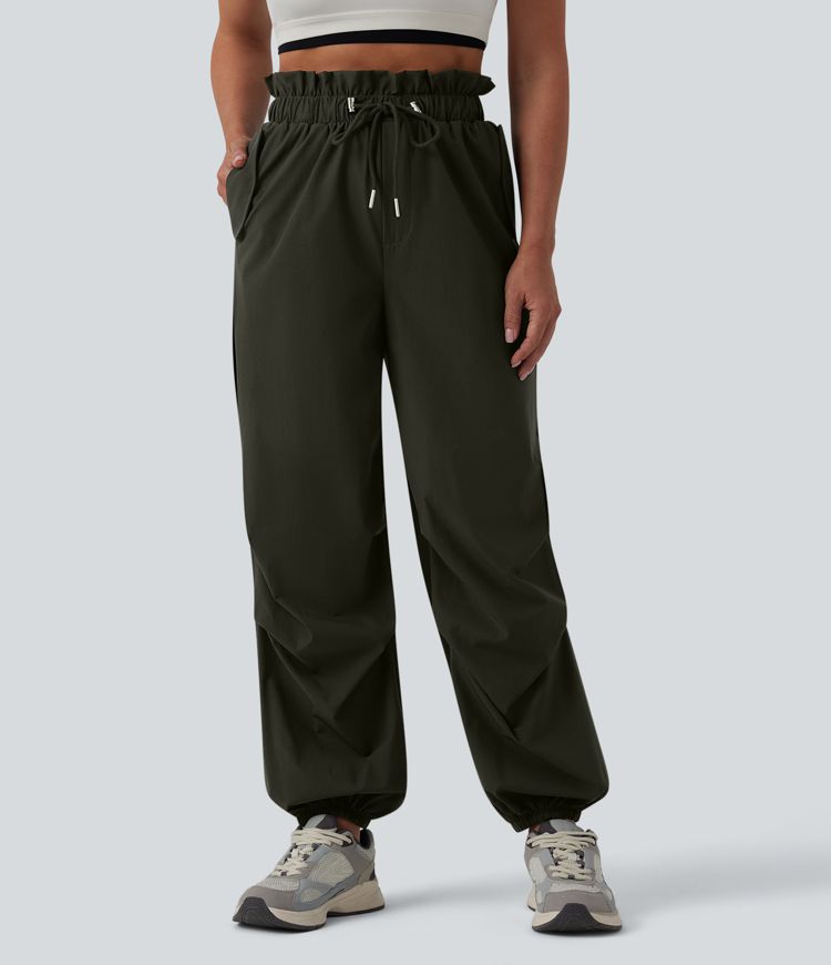 Workout-Jogginghose im Fallschirm-Stil mit hohem Bund, Seitentaschen und Kordelzug